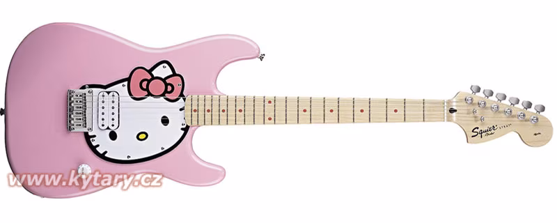 První kytara jen pro holky. Fenomén "Hello Kitty" konečně dorazil do Čech, a měl by se stát zbraní všech správných roštěnek. Jedná se o plnohodnotné kytary značky Squier licencované firmou Fender, jejichž tělo je vyrobeno z agathisu, mají javorový krk včetně hmatníku a jeden humbucker u kobylky, který lze korigovat jedním potenciometrem. Kytary jsou výjimečné také svým rozkošným pickguardem zobrazujícím kočičí hlavu a na zadní části naleznete velké Hello Kitty® logo. <br><br>