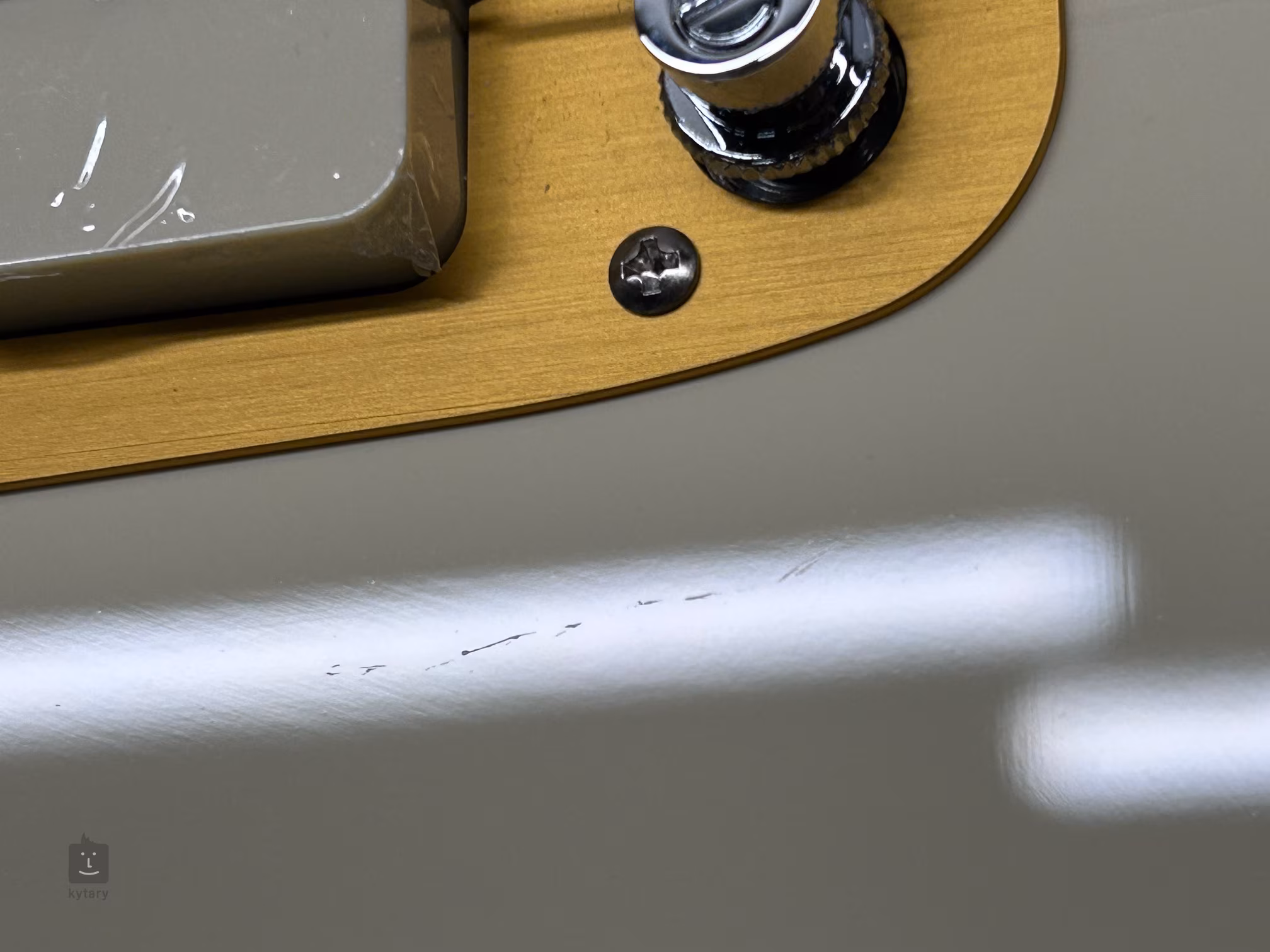 Lipové tělo kytary zdobí lesklý finiš a barevná úprava Vintage White. K javorovému krku s pohodlným C profilem je přilepen hmatník z fíkovníku osazený jednadvaceti pražci velikosti Jumbo a bílými pozičními tečkami. Struny jsou uchyceny v ladicích mechanikách ve vintage stylu a přes kobylku Adjusto-Matic v tradičním Jazzmaster floating tremolu. Stylové zpracování podtrhuje pickguard z anodizovaného hliníku a logo Fender Squier Jazzmaster na hlavě kytary.