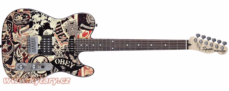 Tak tohle je masox!!! Nepřehlédnutelnou sérii "Obey Graphic" pro Vás připravila firma Squier licencovaná firmou Fender. A že je opravdu na co koukat. Krom unikátního grafického potisku je zajímavý také sešlý RusticAndWorn hardware, který vypadá jako by prošel několika válkami a opravdu budí dojem pěkně drahého originálu. Snímače značky Duncan Designed® se starají o věrný a čistý zvuk vzhledem k použitým materiálům. Tyto kvalitní kytary jsou úzce spjaté s kampaní Obey, která má za účel v reakci na to, co vnímáme kolem sebe, evokovat spoustu otázek a pocitů. Hlavním krédem této v Americe velmi známé kampaňe je "Svoboda vyjádření se". <br><br>
