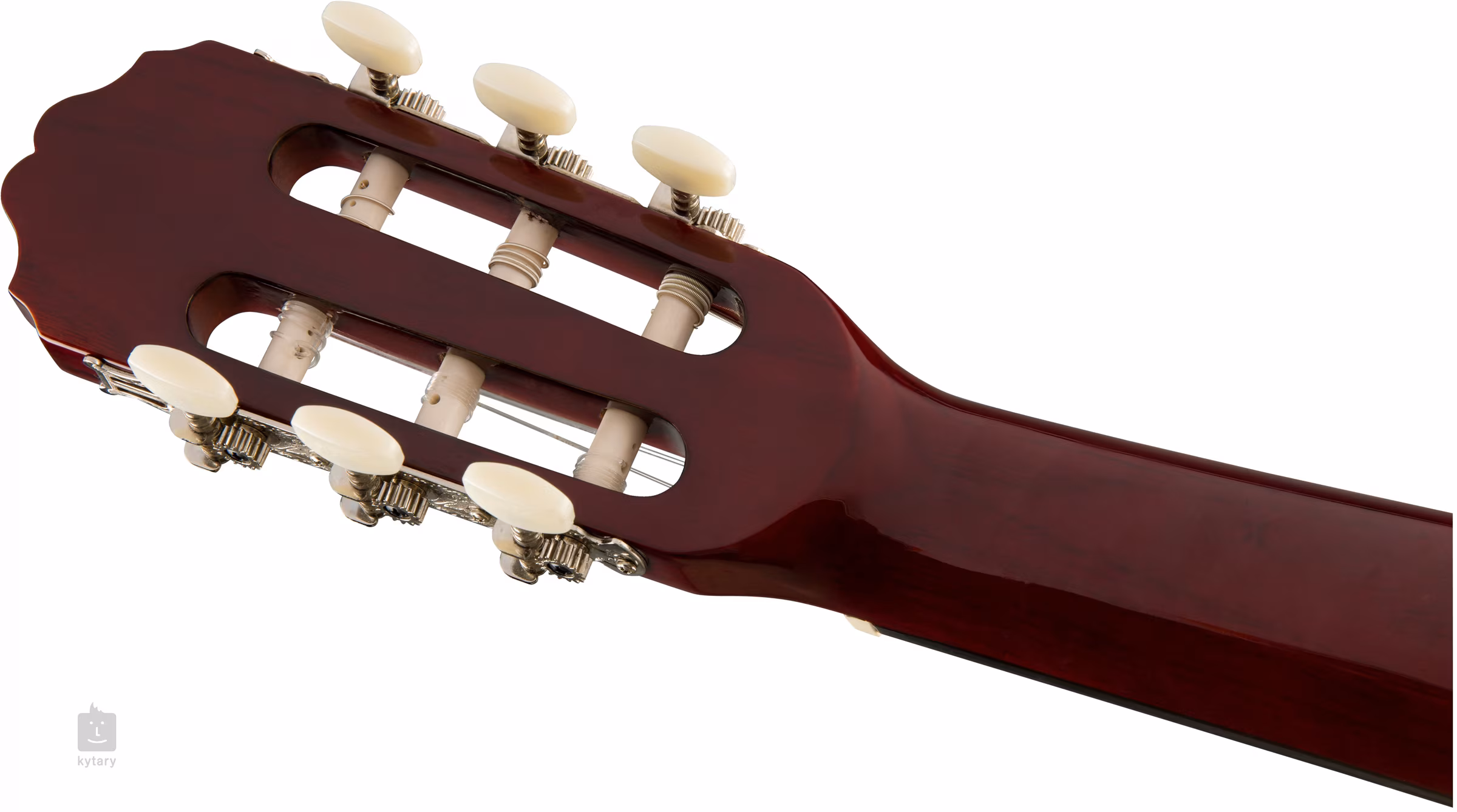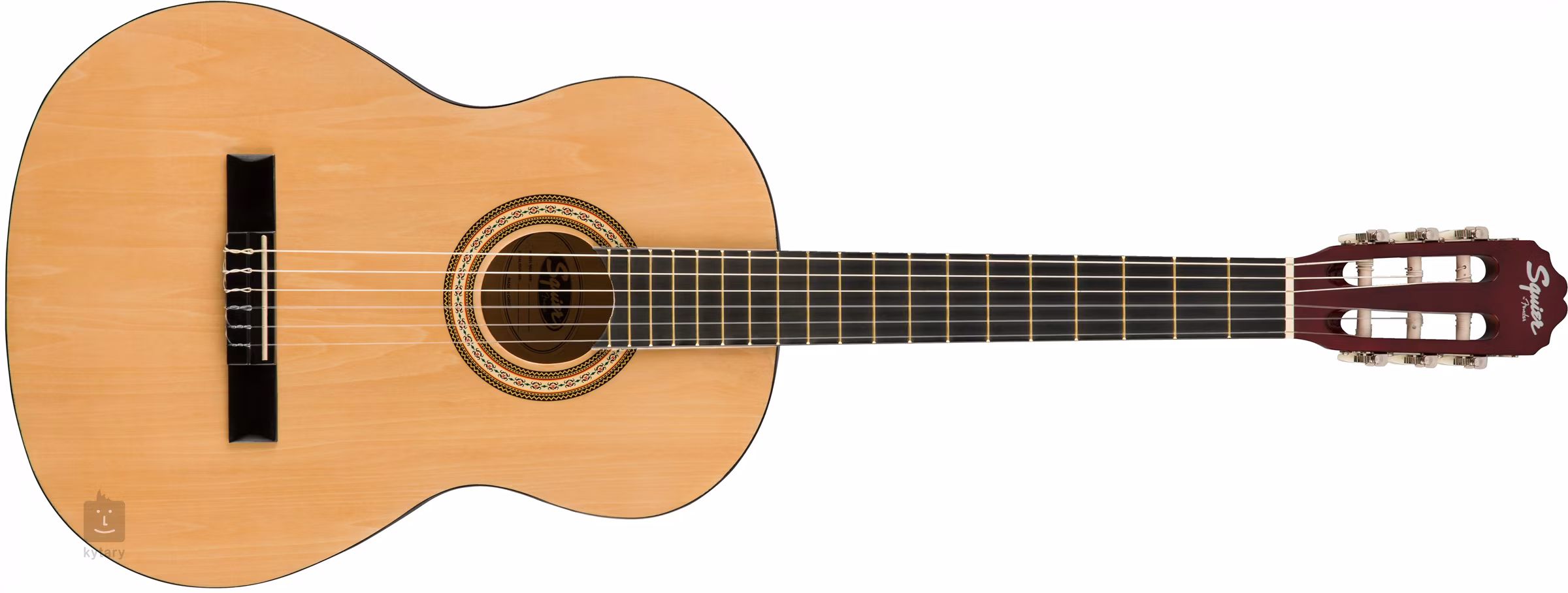 Fender Squier SA-150N je cenově dostupná klasická kytara vhodná pro začátečníky. Vrstvený korpus nástroje je složen z přední desky z laminované lípy a zadní desky a lubů z laminovaného mahagonu. Přední desku vyztužuje snížené X žebrování. K mahagonovému krku je přilepen hmatník z mořeného javoru osazený devatenácti pražci. Struny jsou uchyceny ve firemních chromovaných ladicích mechanikách a kobylce z mořeného javoru. Stylové zpracování podtrhuje dekorativní rozeta a logo Squier by Fender.