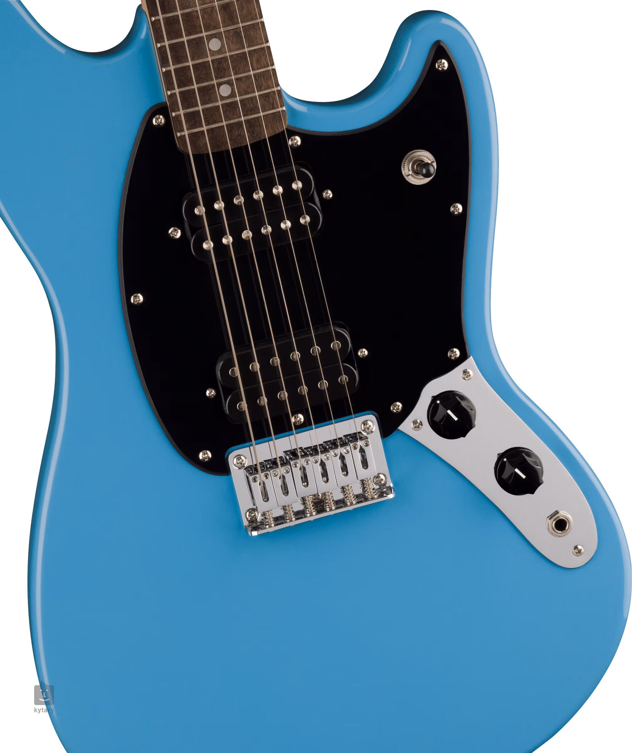 Fender Squier SONIC MUSTANG HH LRL BPG CAB je cenově dostupná elektrická kytara vhodná pro začínající kytaristy. Topolové tělo nástroje kryje lesklý polyuretanový lak. K javorovému krku s "C" profilem je přilepen hmatník z fíkovníku osazený dvaadvaceti pražci velikosti Narrow Tall a pozičními tečkami z imitace perleti. Díky kratší menzuře (610 mm) bude hra na Mustanga vyhovovat i muzikantům, kteří mají u kytar se standardní menzurou (Strat, Tele, Jazzmaster) problémy s dohmatem.