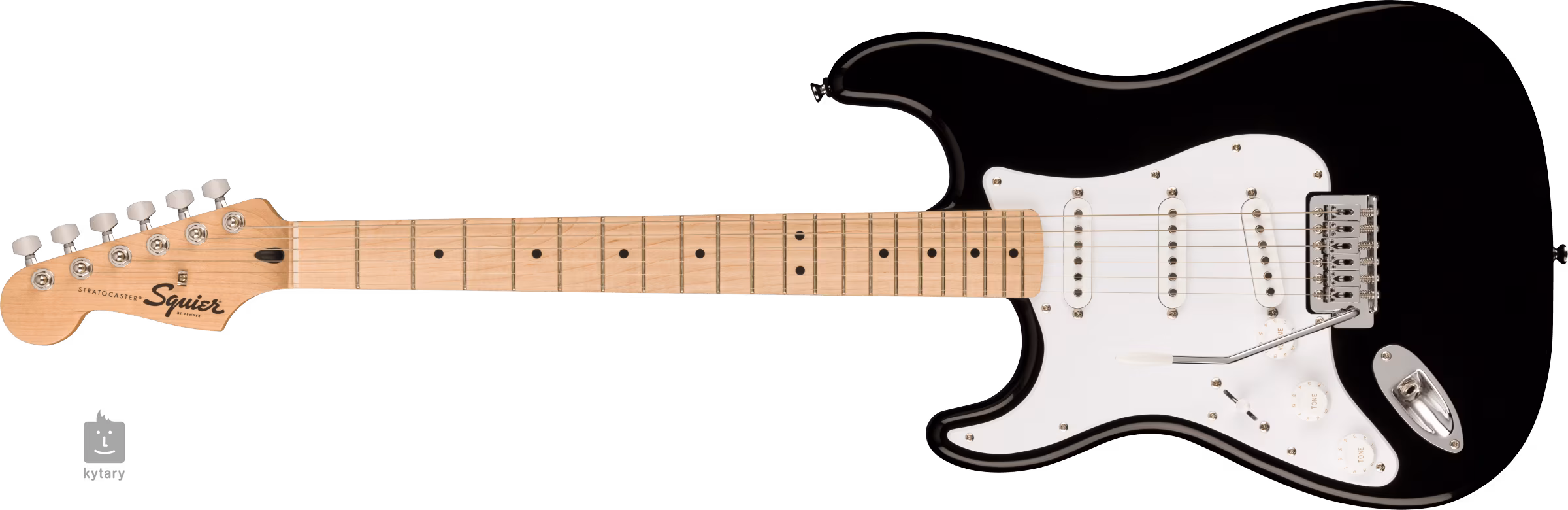 Fender Squier SONIC STRAT LH MN WPG BLK je cenově dostupná levoruká elektrická kytara bez zbytečných příkras vhodná pro začínající kytaristy. Topolové tělo nástroje kryje lesklý polyuretanový lak. Krk s "C" profilem a hmatník kytary jsou zhotoveny z javoru, plochu hmatníku rozděluje jednadvacet pražců velikosti Narrow Tall a černé poziční tečky.