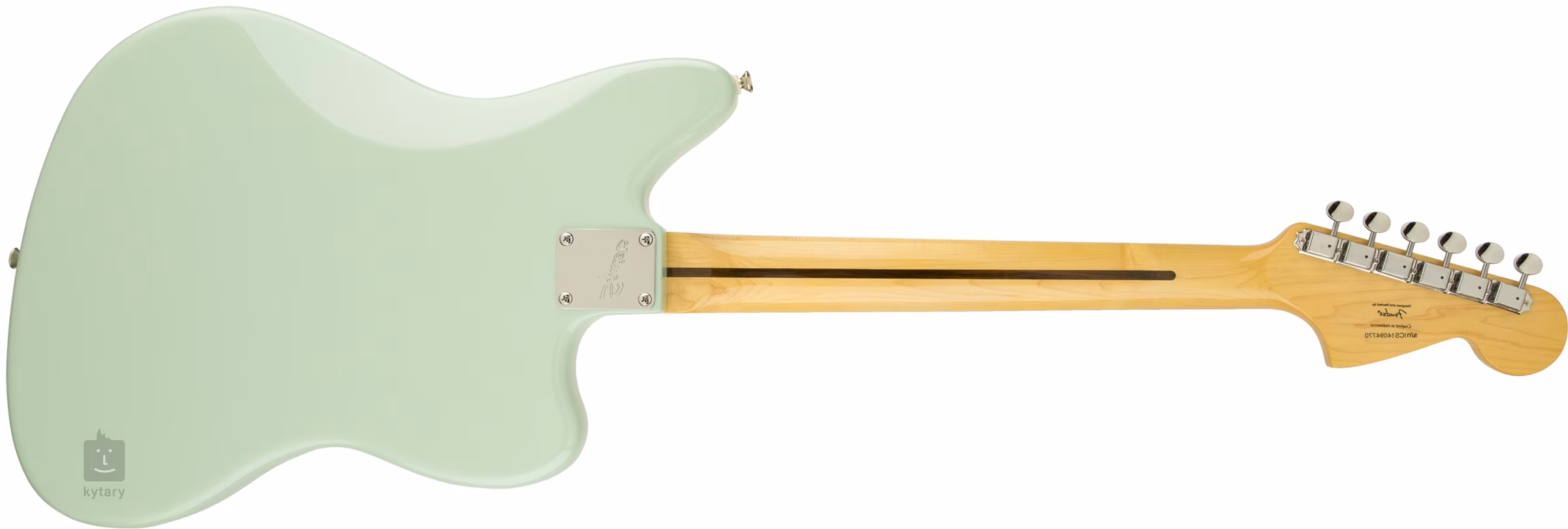 Jaguar má asymetrické tělo s výřezem pod krkem a seříznutím nad ním a je vyroben z lípy. Pod strunami nalezneme 3vrstevný pickguard. Krk je z javoru, jeho menzura je vyměřena na 610 mm, má C profil a polyesterový finiš. Hmatník je zhotoven z fíkovníku, má rádius 9,5 palce a najdeme na něm 22 Medium Jumbo pražců.