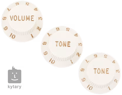 Sada tří originálních plastových krytů na poteciometry (1x Volume, 2x Tone). Vhodná pro 1/4" split-shaft potenciometry, tedy pro většinu mexických a amerických modelů Stratocaster, vyrobených od roku 1954 po současnost.