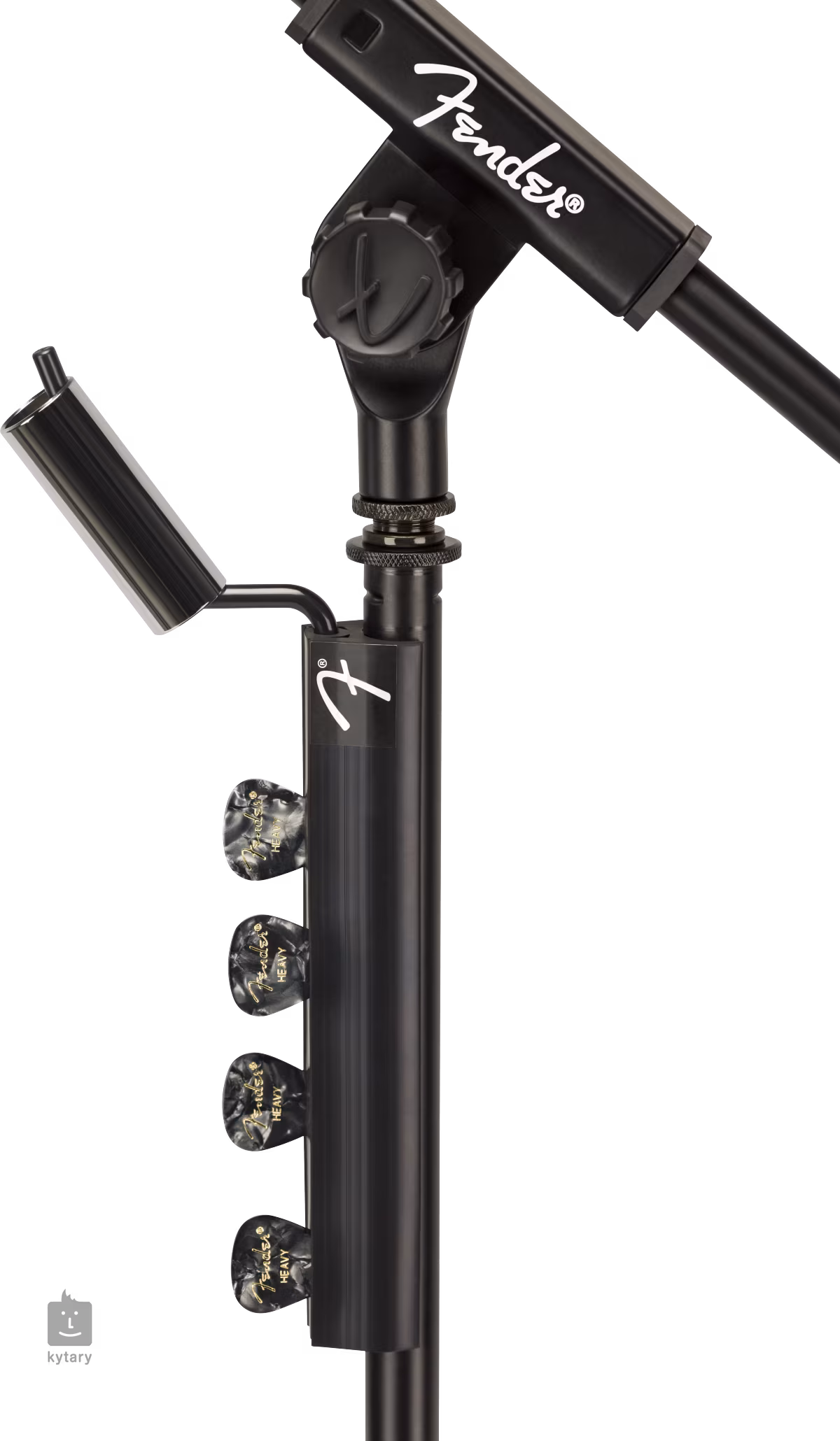 Mikrofonní stojan je vybaven robustním nastavitelným ramenem, které vždy zůstane v poloze, jakou jste nastavili. Obsahuje originální reliéfní prvky "F" pro uchopení a otočné spojky pro nastavení výšky a vysunutí ramena. Součástí tohoto stojanu je také odnímatelný držák na trsátka a bottleneck (slide váleček), který lze snadno připevnit i odejmout. Toto připínací příslušenství, vyrobené z odolné gumy, pojme až 12 trsátek pro rychlý přístup. Bottleneck držák je vhodný pro všechny standardní rozměry a je rovněž odnímatelný. Nechybí klipy pro vedení kabelu.