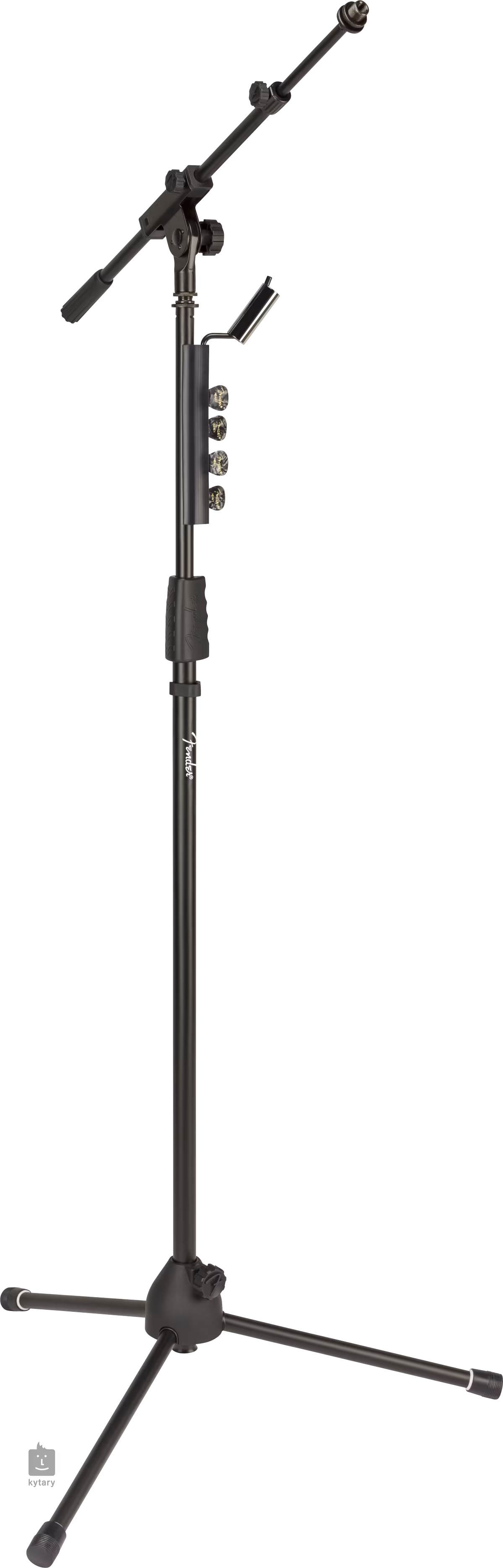 Fender Telescoping Boom Microphone Stand je klasický výsuvný mikrofonní stojan s ramenem a odnímatelným držákem trsátek a slide válečku.