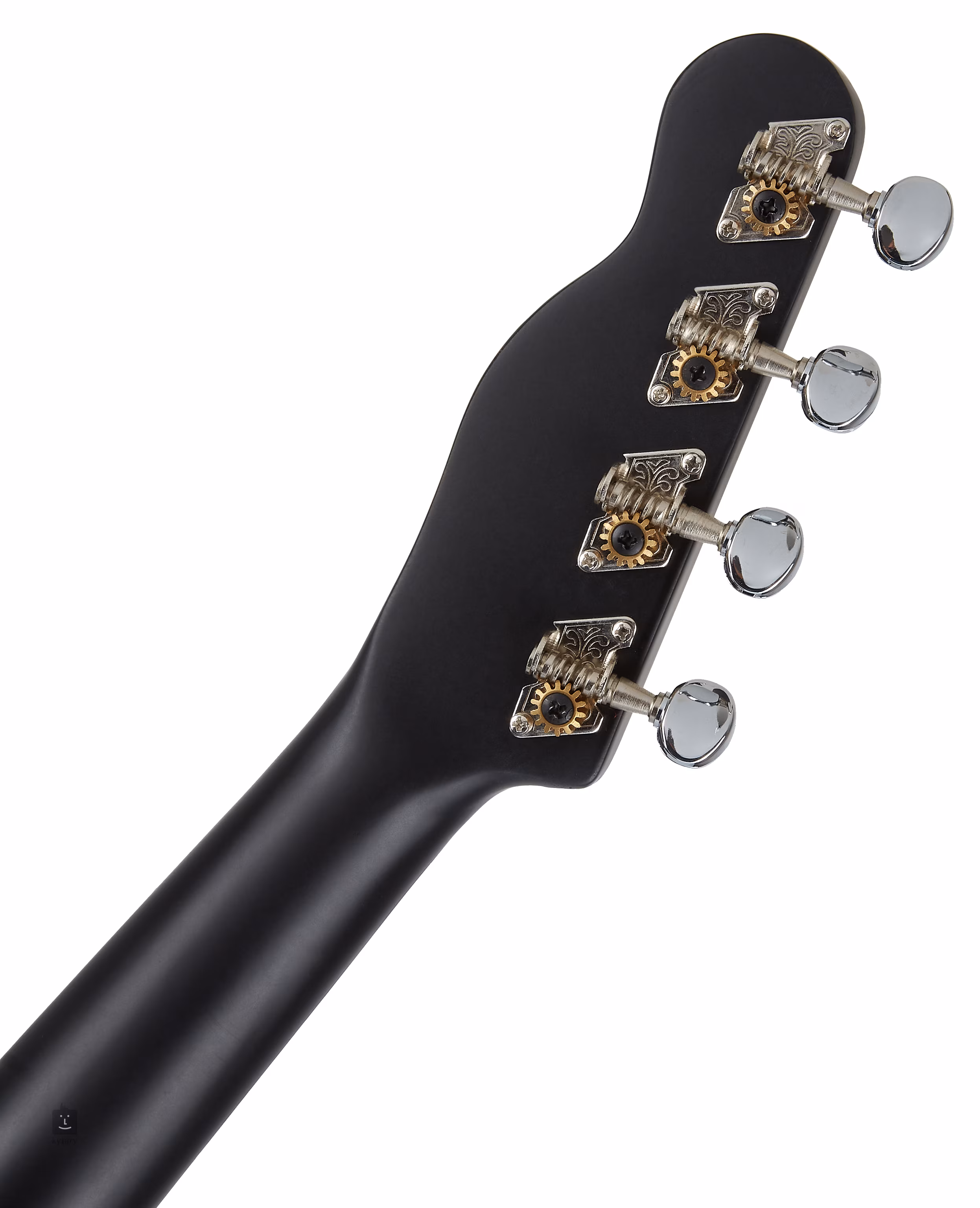 Ukulele nabízí stylovou hlavici v designu elektrických kytar Telecaster s chromovanými ladicími mechanikami (Open-Back Geared), tělo z laminované lípy a úzký krk ze dřeva nato s pohodlným C profilem pro snadný úchop a pohyb po ořechovém hmatníku.