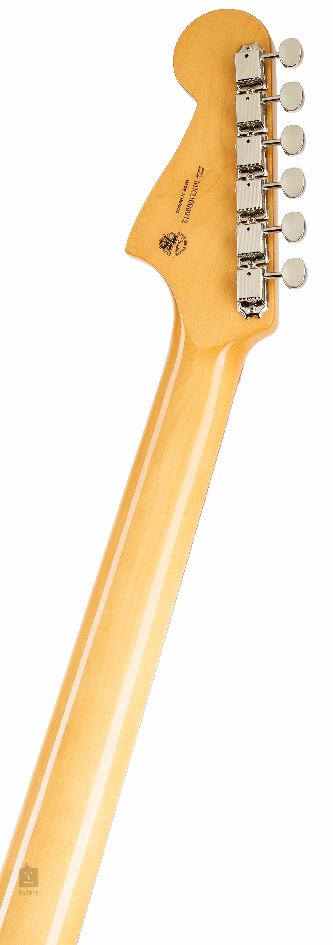 Olšové tělo kytary s charakteristickým offset tvarem kryje lesklý polyesterový lak. Javorový krk s příjemným profilem “Thin C“ a hmatník ze dřeva pau ferro s radiem 7,25” osazený jednadvaceti pražci velikosti Vintage vám poskytnou dobově autentický feel bez jakýchkoliv kompromisů. Orientaci po ploše hmatníku usnadňují bílé poziční tečky.