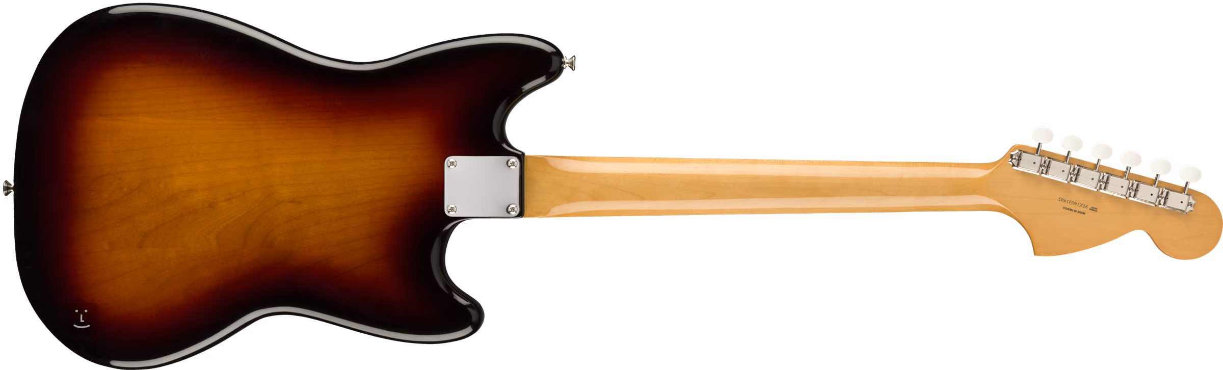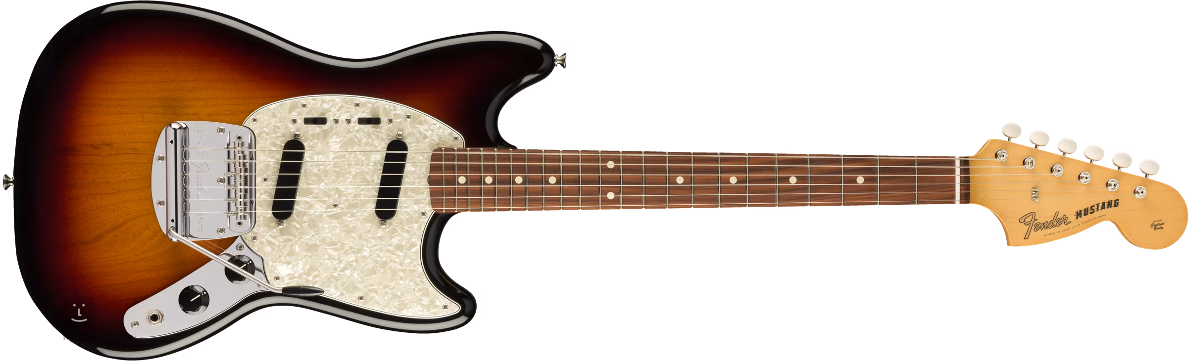 Olšové tělo kytary s charakteristickým offset tvarem kryje lesklý polyesterový lak. Javorový krk s příjemným profilem “Thin C“ a hmatník ze dřeva pau ferro s radiem 7,25” a pro Mustangy typickou kratší menzurou vám poskytnou dobově autentický feel bez jakýchkoliv kompromisů. Orientaci po ploše hmatníku usnadňují bílé poziční tečky.