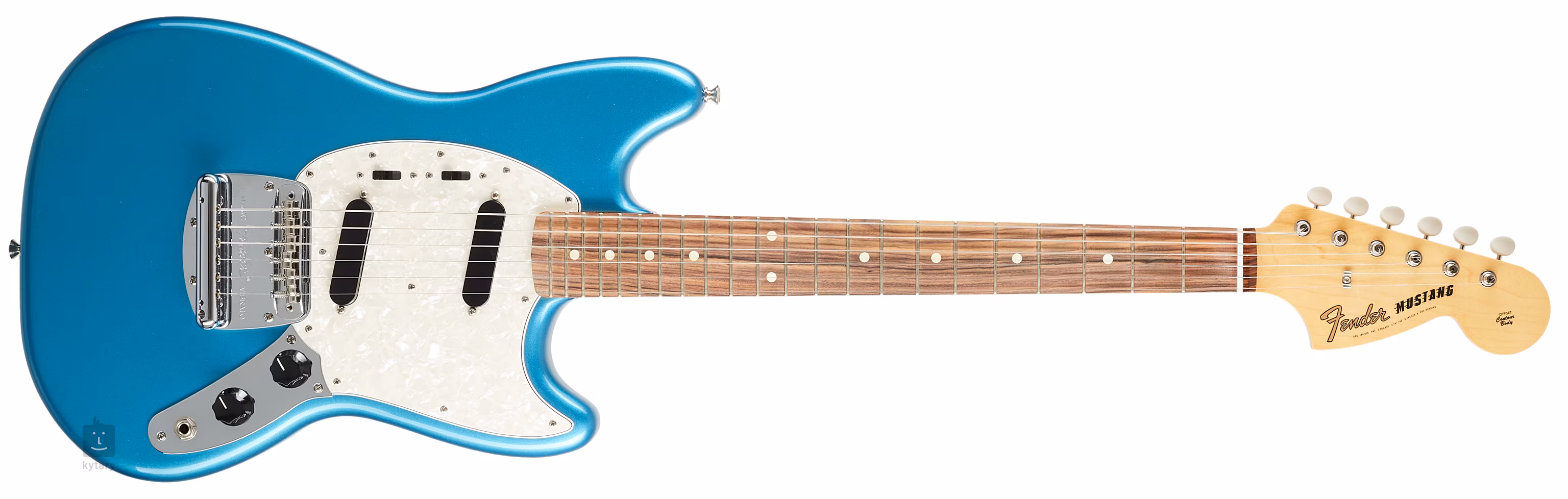 Olšové tělo kytary s charakteristickým offset tvarem kryje lesklý polyesterový lak. Javorový krk s příjemným profilem “Thin C“ a hmatník ze dřeva pau ferro s radiem 7,25” a pro Mustangy typickou kratší menzurou vám poskytnou dobově autentický feel bez jakýchkoliv kompromisů. Orientaci po ploše hmatníku usnadňují bílé poziční tečky.