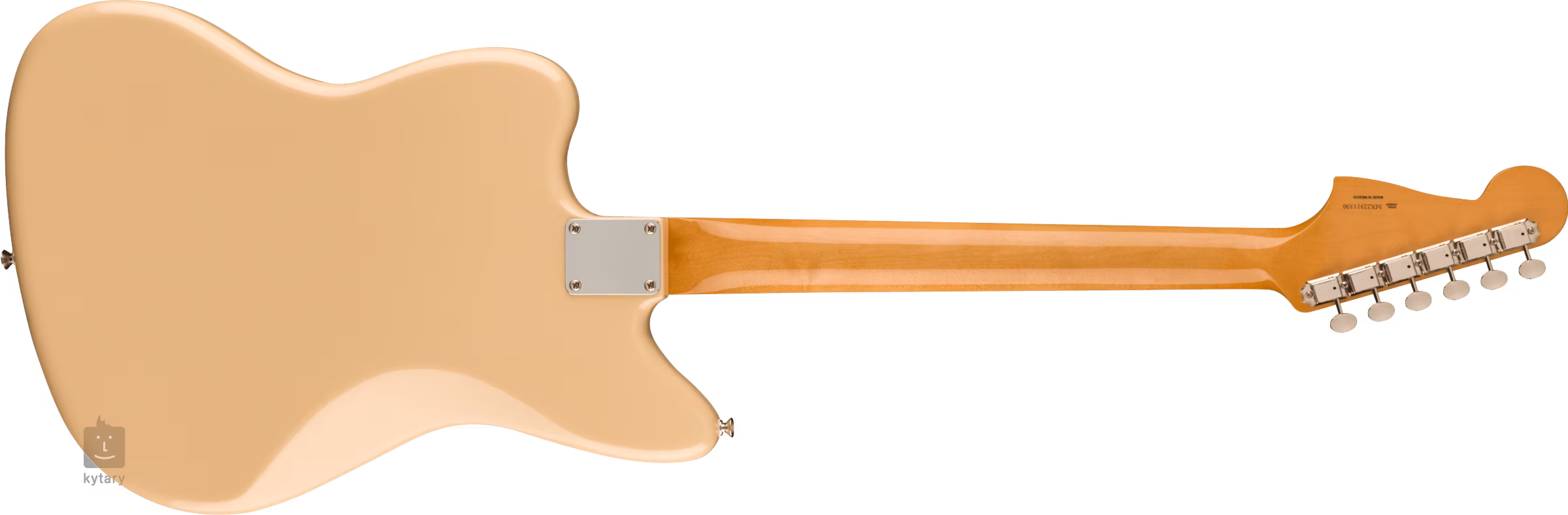 Olšové tělo v asymetrickém tvaru elektrických kytar Jazzmaster kryje lesklý polyesterový lak. K javorovému krku je přilepen palisandrový hmatník osazený jednadvaceti pražci velikosti Vintage Tall. “Late 50s C” profil krku nabízí povědomě známý úchop, který vám bude dobře sedět v ruce, zatímco rádius hmatníku 7,25 palců a pražce Vintage Tall dávají jasně najevo, že tady s nějakými modifikacemi a úlitbami pro moderní hráče nemáte počítat.