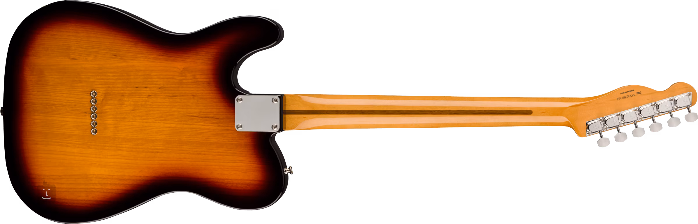 Dva vintage-style 60s snímače poskytují kytaře krystalicky čistý tón i kovový “twang” modelů Telecaster, pro které jsou tyto nástroje v hledáčku kytaristů už x desítek let. Charakter zvuku upravíte pomocí standardních ovladačů hlasitosti, tónové clony a třípolohového přepínače snímačů. Struny jsou přes nultý pražec ze syntetické kosti uchyceny ve firemních ladicích mechanikách ve vintage stylu a přes klasickou Tele style kobylku se třemi ocelovými sedly skrze tělo kytary. Stylové zpracování podtrhuje čtyřvrstvý pickguard z imitace perleti a logo Fender na hlavě kytary.