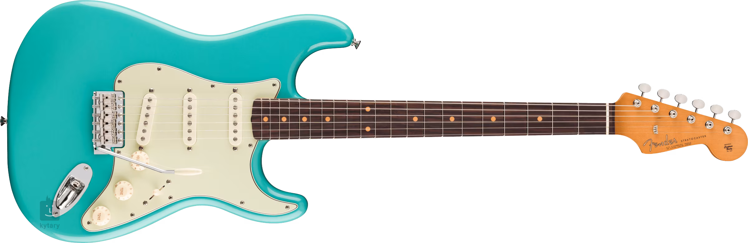 Trio Vintage-Style Early '60s single-coil Strat snímačů poskytuje kytaře čistý zvonivý zvuk s dynamickou odezvou a jasně přiznanou Fender DNA. Kontury zvuku upravíte pomocí ovladačů hlasitosti, tónové clony a pětipolohového přepínače snímačů. Struny jsou přes nultý pražec z kosti uchyceny ve firemních ladicích mechanikách ve vintage stylu a synchronizovaném tremolu se šesti ocelovými sedly. Stylové zpracování podtrhuje třívrstvý Mint Green pickguard.