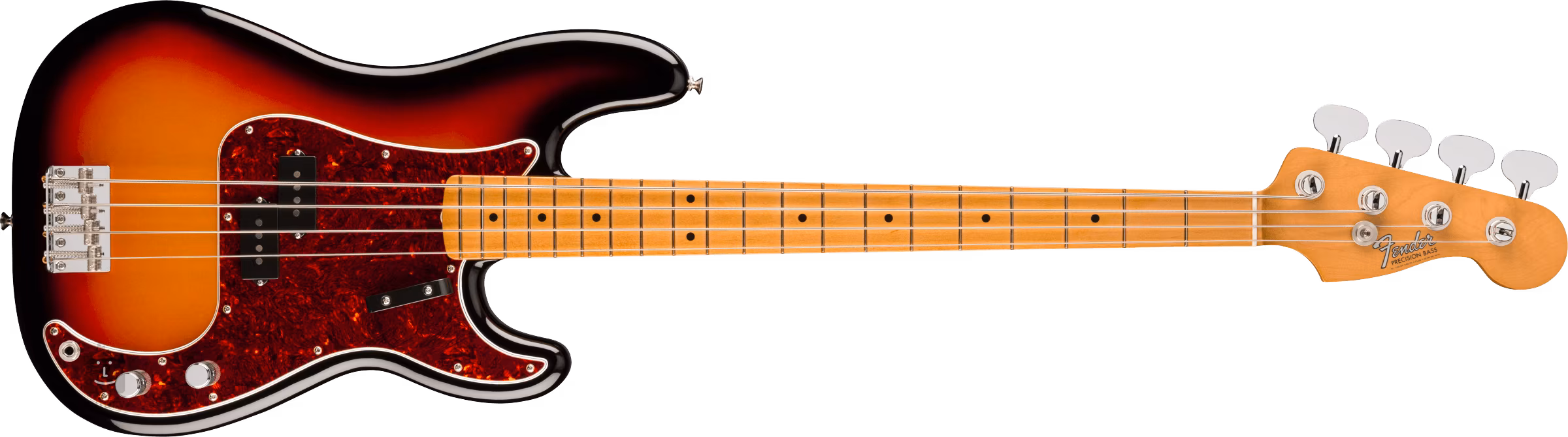 Precision Bass Vintage-Style Late '60s split single-coil poskytuje baskytaře průrazný definovaný zvuk s výrazným basovým spodkem PB snímačů konce 60. let, který si prorazí cestu každým mixem. Kontury zvuku upravíte pomocí ovladačů hlasitosti a tónové clony. Stabilní ladění zaručuje ukotvení strun v ladicích mechanikách ve vintage stylu a pevné kobylce se čtyřmi ocelovými sedly. Stylové zpracování podtrhuje čtyřvrstvý pickguard z imitace želvoviny.
