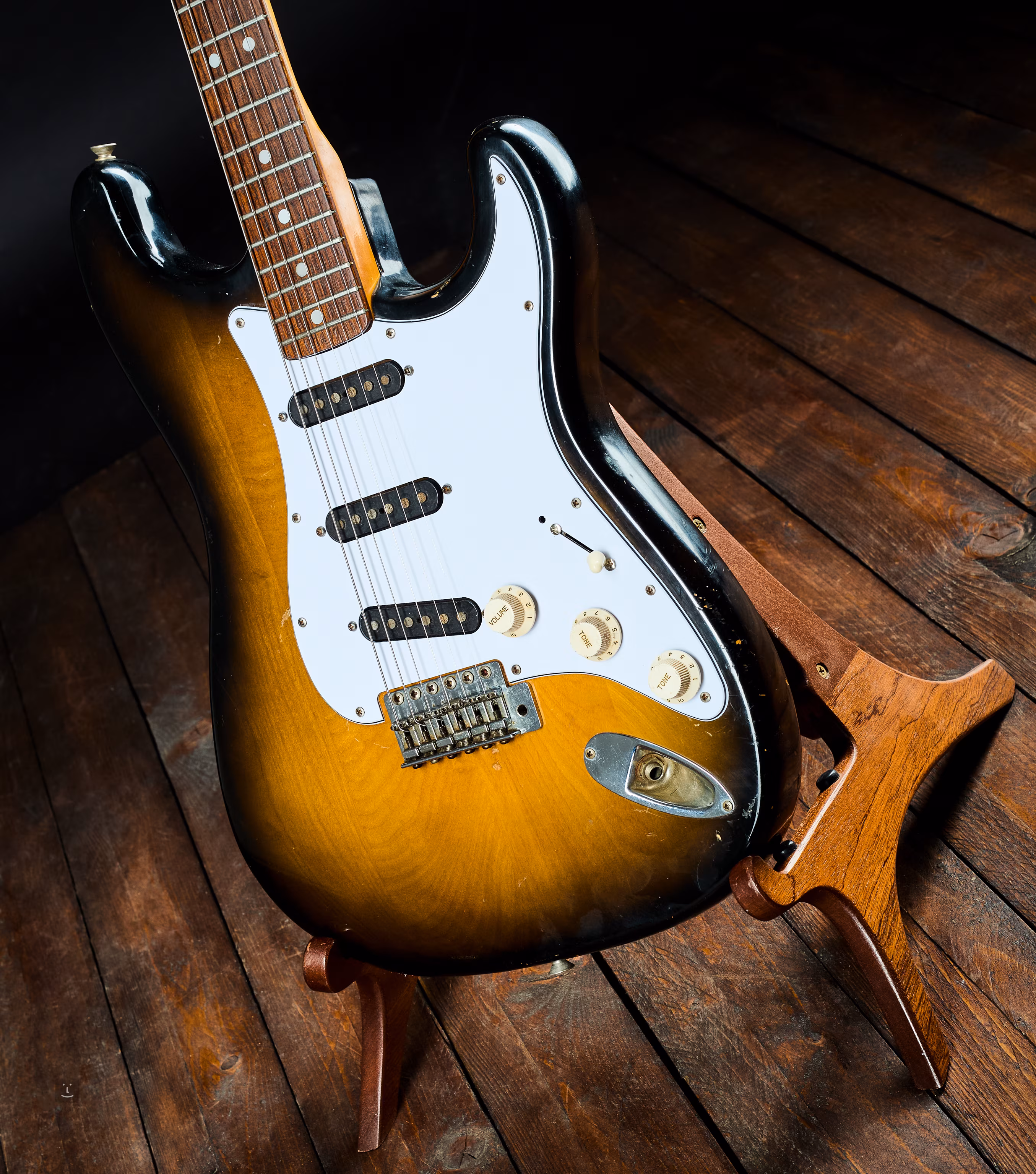 Kytara má větší množství Ťukanců a škrábanců odpovdídajících věku nástroje. Pickguard je zřejmě nepůvodní, stejně jako několik šroubečků. Chybí plastové kryty snímačů, snímače jsou ovšem původní. Srážeče strun na hlavici jsou posunuté o kousek vedle. Ladicí mechaniky jsou původní.
