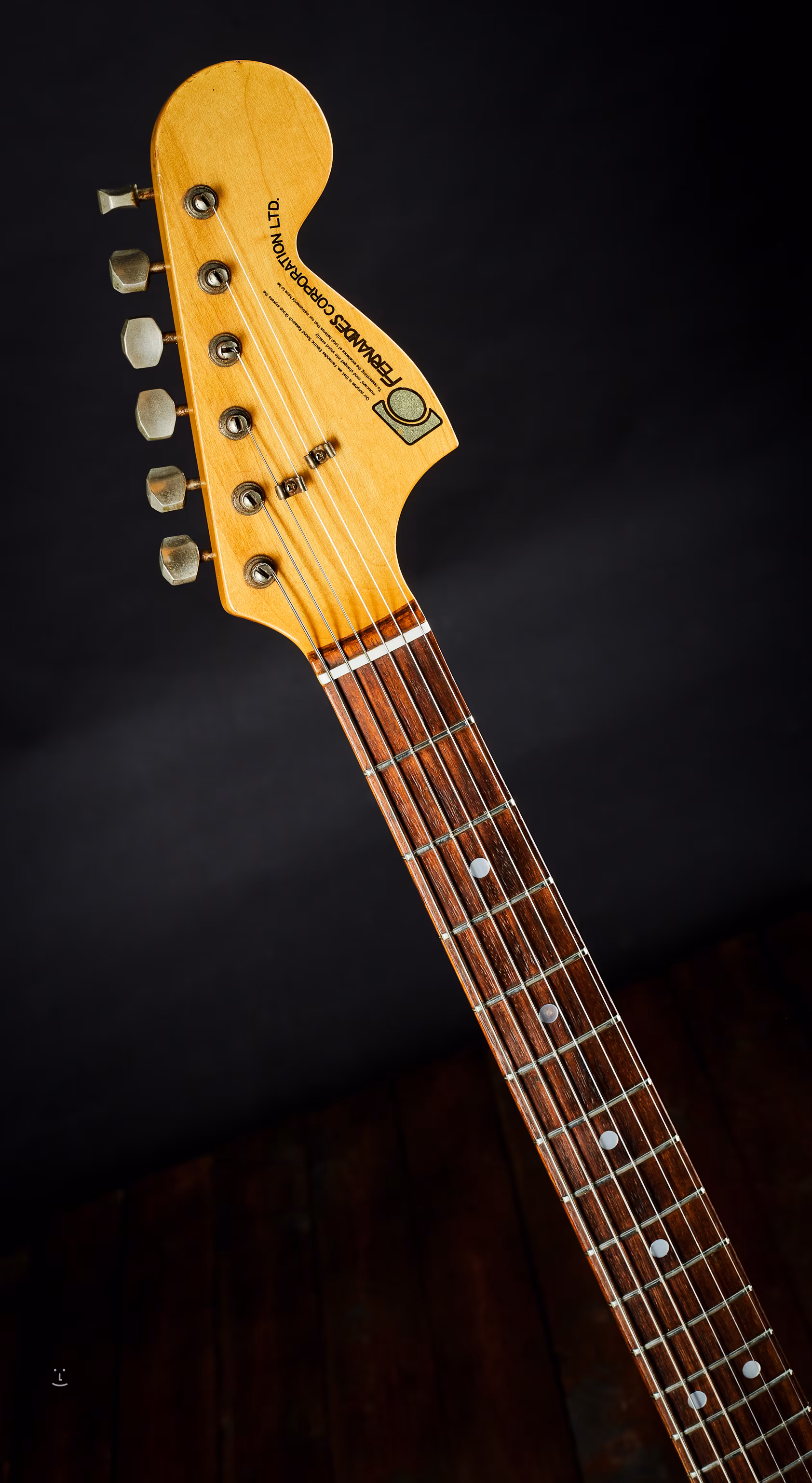 Vše je původní kromě šroubků v pickguardu a jednoho snímače, který byl odborně opraven - převinut novým snímačovým drátem u Michala Tůmy (Tůma Pickups).