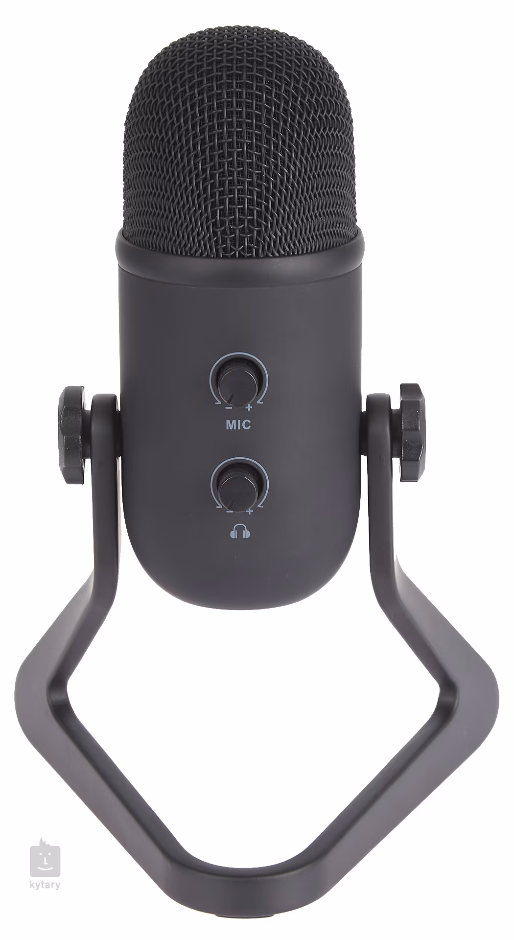 USB kondenzátorový mikrofon disponuje kardioidovou směrovou charakteristikou a je vhodný pro live broadcasting, nahrávání YouTube videí, studiové session, nahrávání podcastů nebo Skype hovory. Mikrofon disponuje vysokou citlivostí a skvělou zvukovou kvalitou, stačí ho tedy pouze připojit do vašeho zařízení a můžete začít nahrávat. Přední panel obsahuje tlačítko MUTE pro okamžité ztlumení mikrofonu, zadní strana potom poskytne ovladače hlasitosti pro mikrofon a sluchátkový výstup, který vám poskytne detailní monitoring v reálném čase. Součástí balení je stolní stojánek, redukce na klasický mikrofonní stojan a USB kabel pro připojení do PC nebo laptopu.