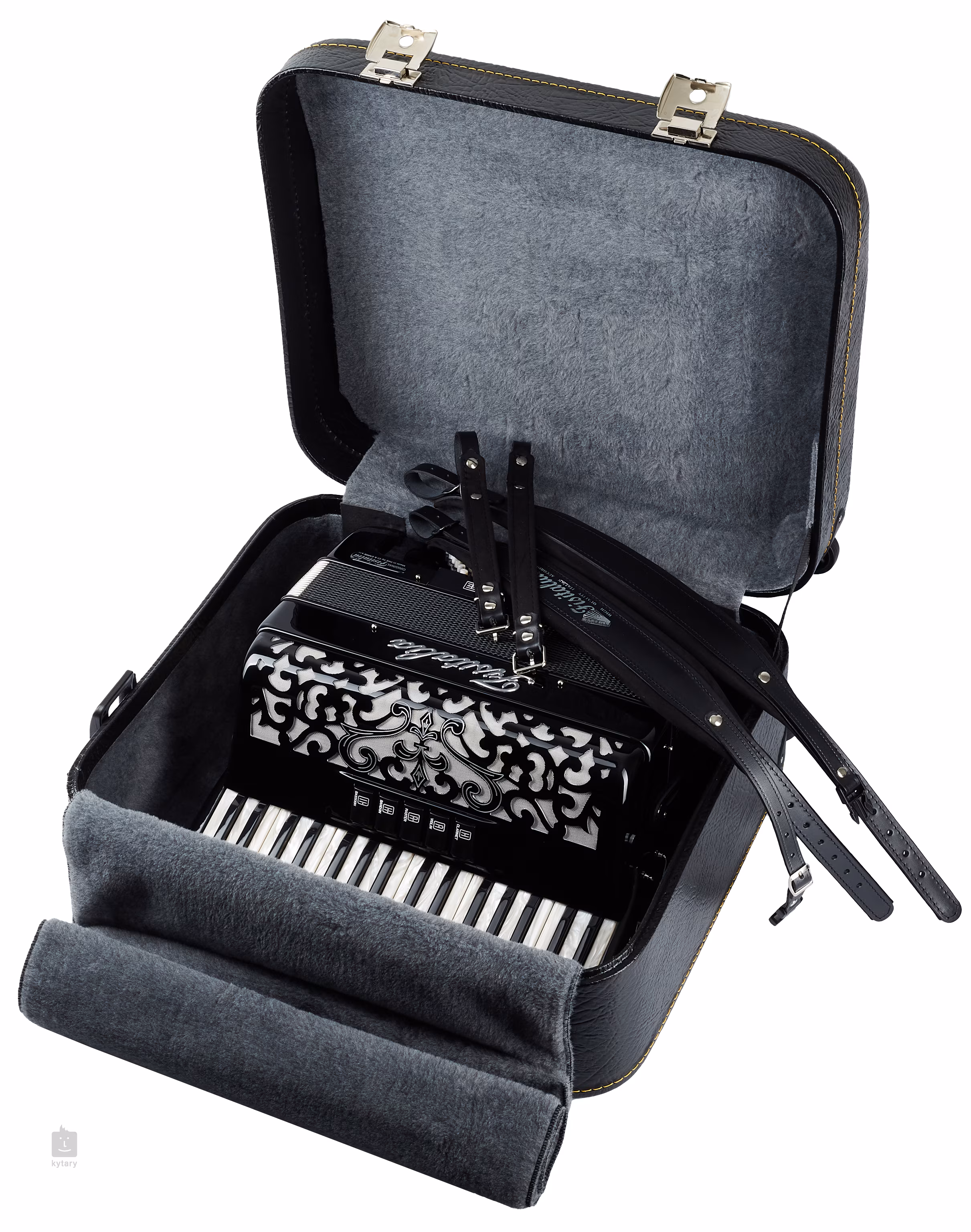 Klávesový akordeon z řady Standard Piano Počet hlasů pravá ruka: 3 Počet hlasů levá ruka: 4 Rozměry: 400 x 380 x 180 mm