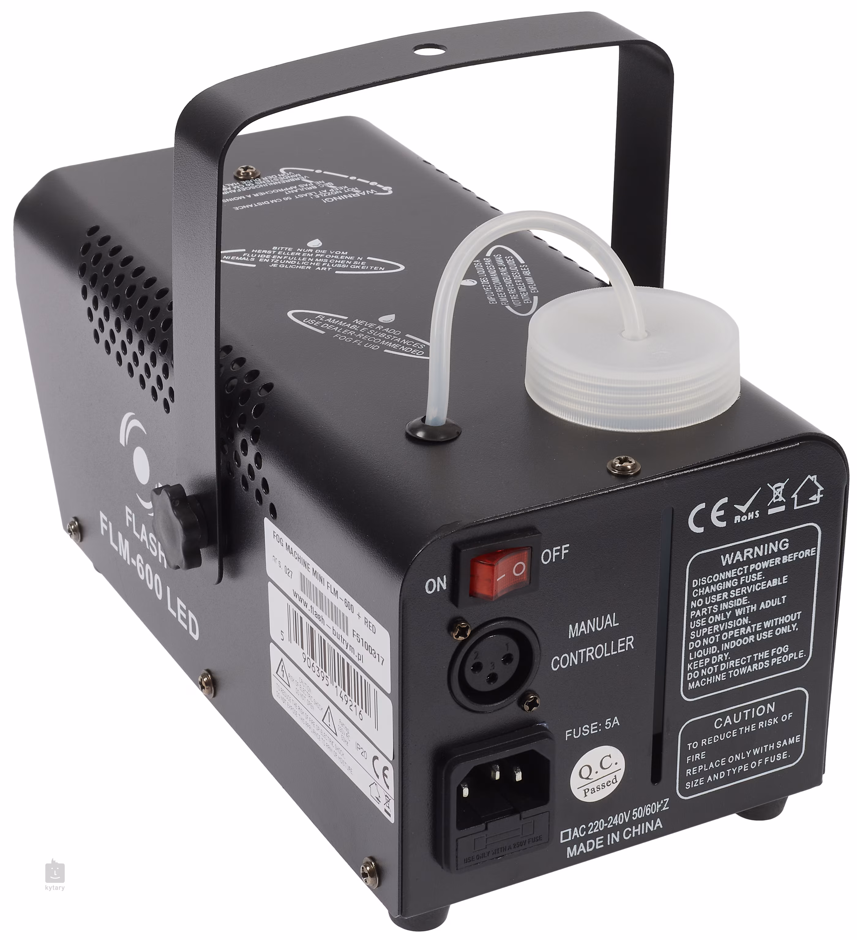 Prvotní zahřátí výrobníku na provozní teplotu trvá přibližně 8 minut. Jeho 1200 W topné těleso umožňuje produkci 56 m³ mlhy za minutu, takže rychle zaplní malou místnost. Kapacita zásobníku na kapalinu je 300 ml. Tento model je vybaven třemi červenými LED diodami, které při produkci mlhy svítí a podtrhují její kouřový efekt. Součástí balení je dálkové ovládání.