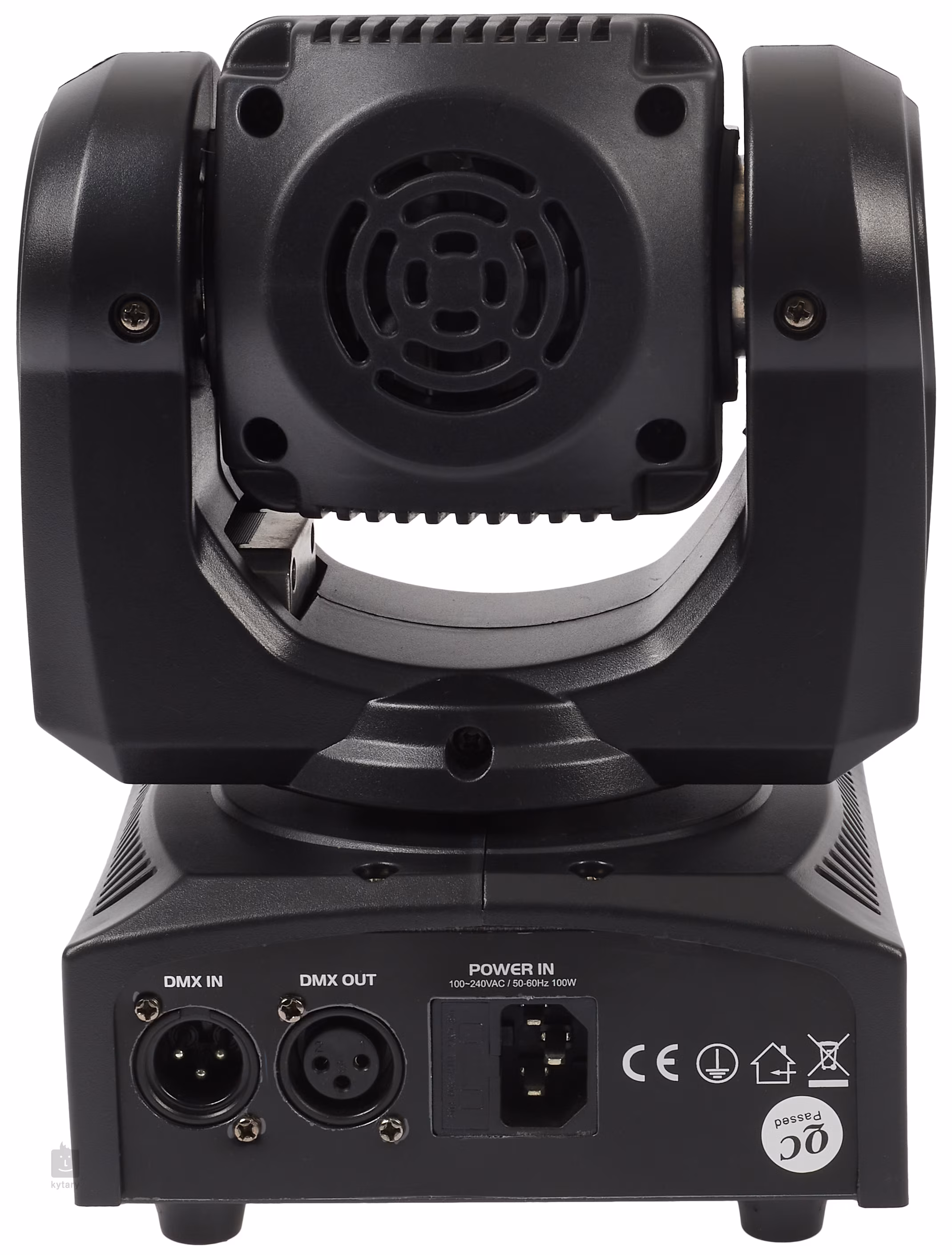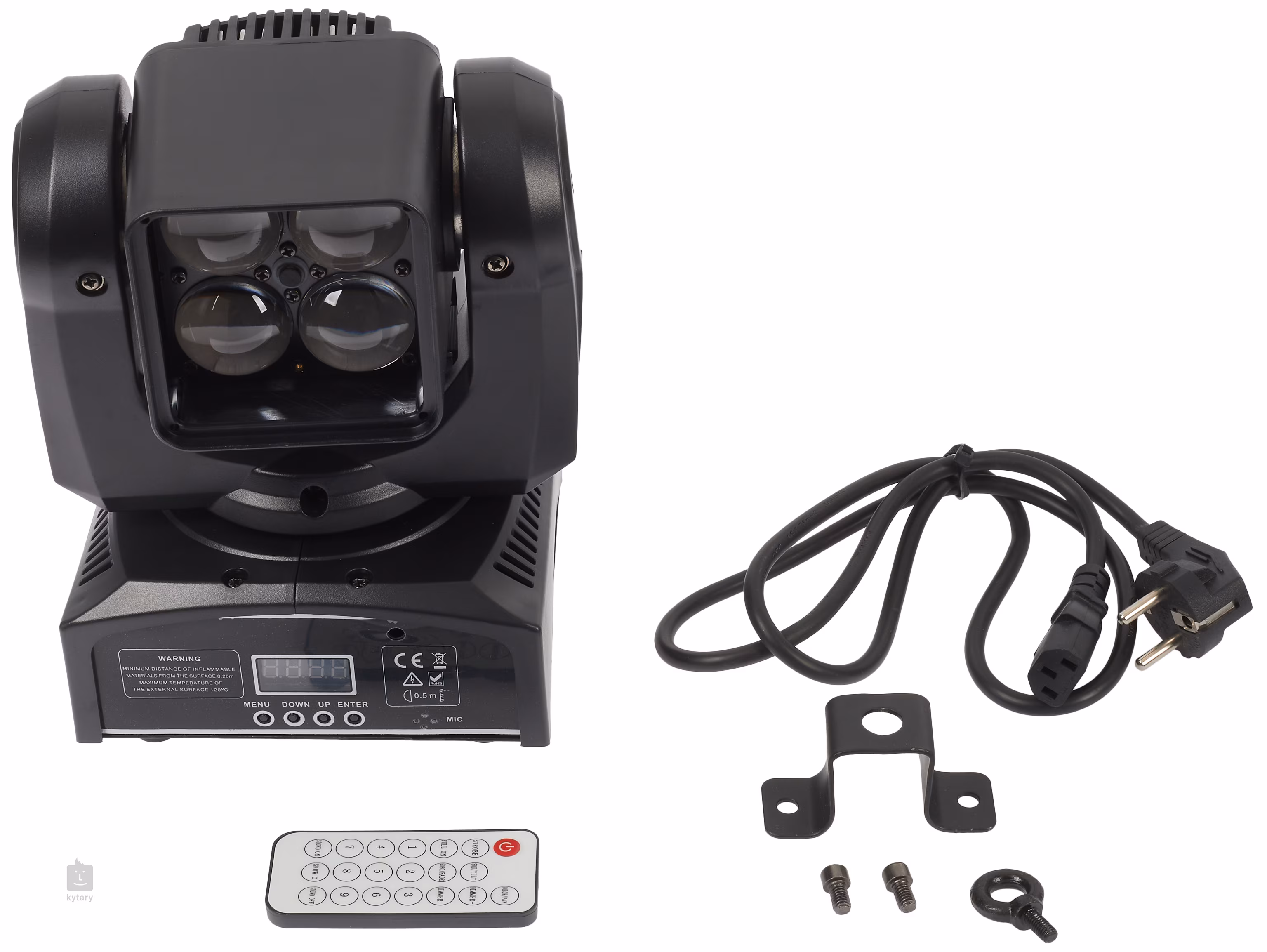 Světlo lze ovládat 14, 16 či 19 DMX kanály, infračerveným dálkovým ovladačem, případně použít jeden z integrovaných programů – najdete zde automatický režim, Master/Slave nebo režim pro ovládání zvukem, který je ideální pro použití při koncertech a jiných hudebních akcích. Samozřejmostí je funkce Pan/Tilt, díky níž se hlava dokáže otáčet do všemožných směrů. Součástí balení je napájecí kabel IEC C14, montážní nástavec pro přidělání na pódiovou konstrukci a IR dálkový ovladač.