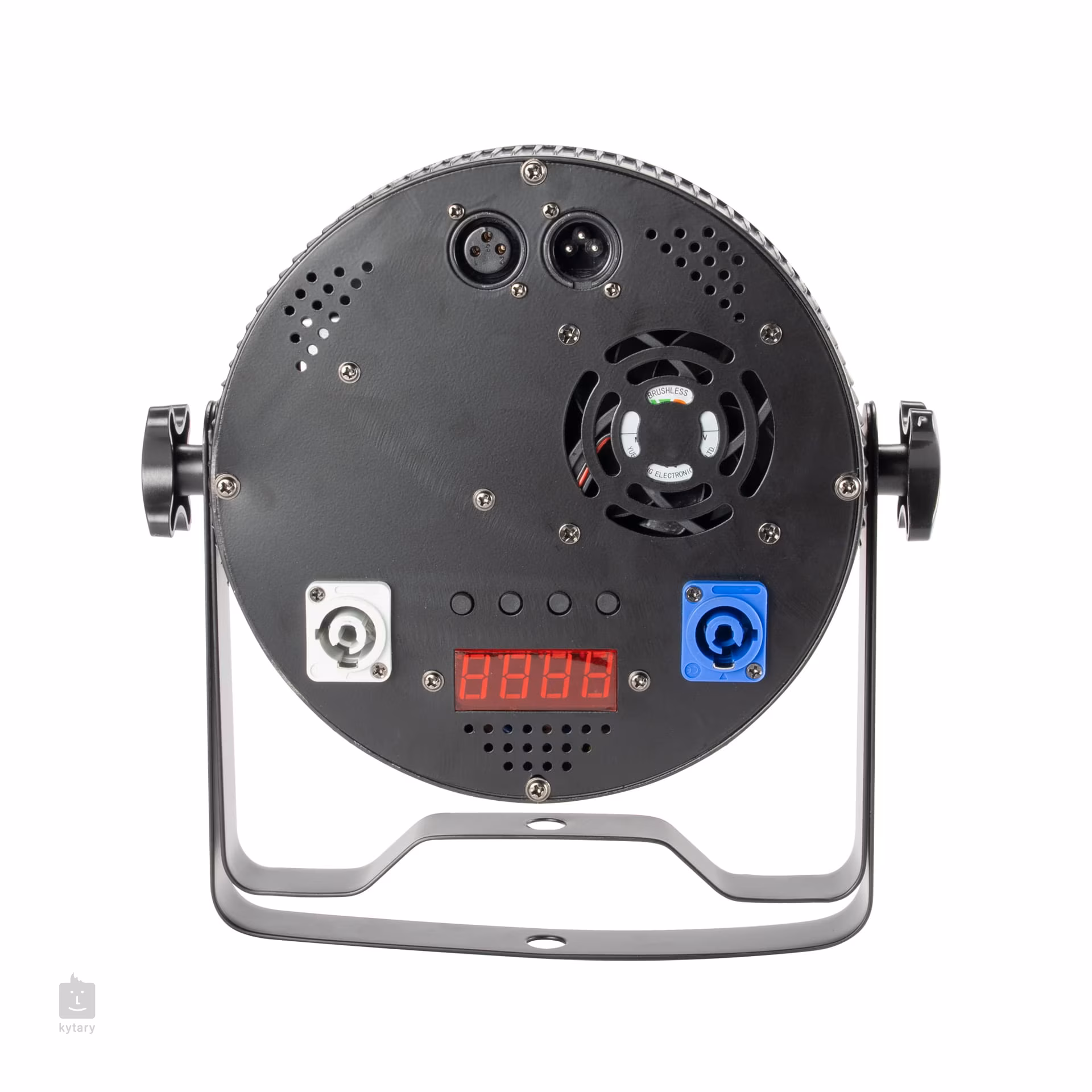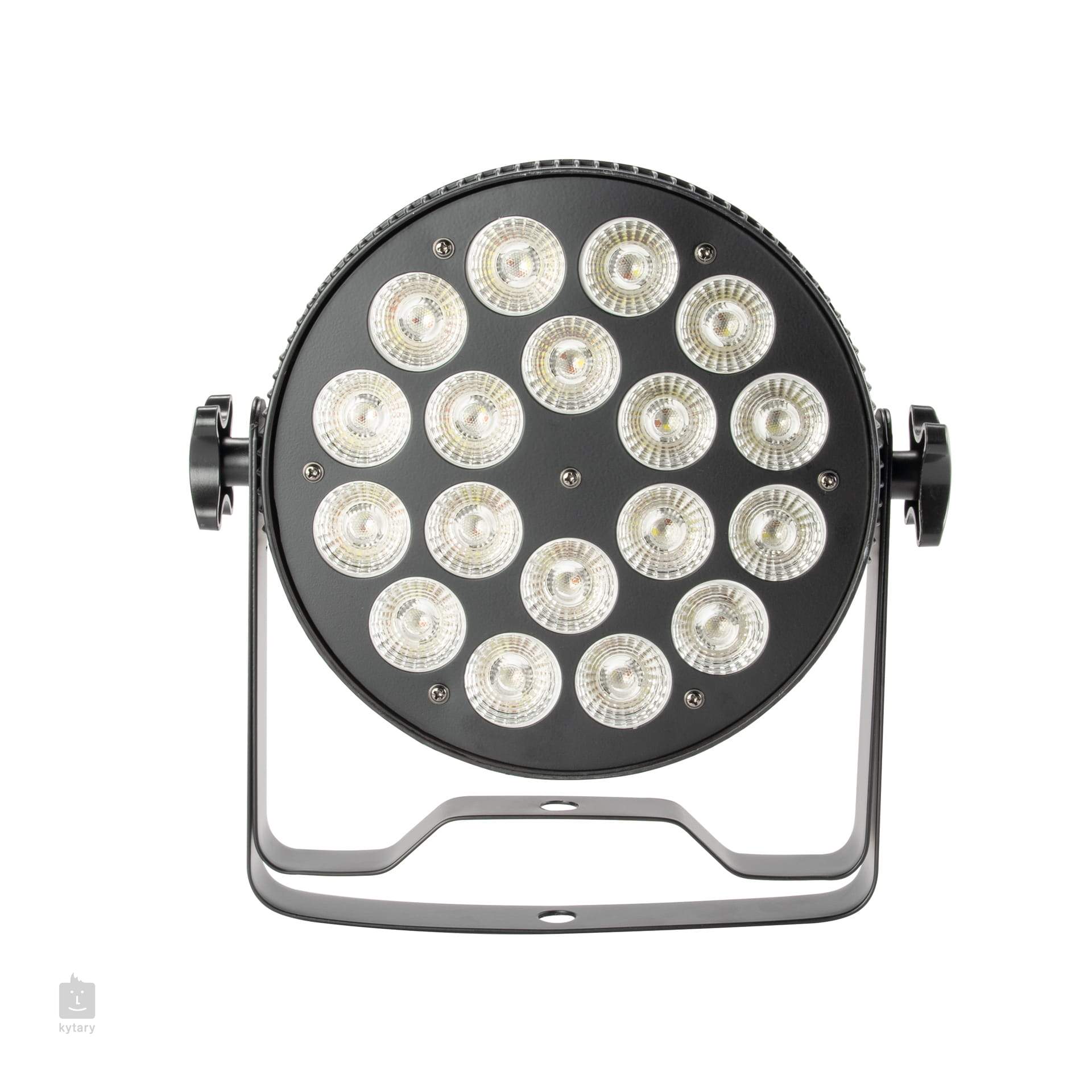 Tento LED PAR reflektor od společnosti Flash je ideální pro osvětlení menších koncertů, tanečních vystoupení a jiných podobných akcí. Díky jeho kompaktním rozměrům a nízké váze (255 x 255 x 80 mm, 2,2 kg) jej ocení také cestující osvětlovači a DJs, kteří hledají svítidlo pro mobilní zábavy. Jeho světelným zdrojem je osmnáct 12W LED diod typu RGBWA + UV (6v1), které vám poskytnou téměř nekonečné možnosti míchání barev, které potěší i ty nejnáročnější uživatele a umožní vám vytvořit různé odstíny od sytých až po jemně pastelové. Součástí je také ultrafialové světlo pro vytváření fosforeskujících světelných show. Kromě barev získáte také stroboskopický efekt s nastavitelnou rychlostí blikání a tlumič světla.