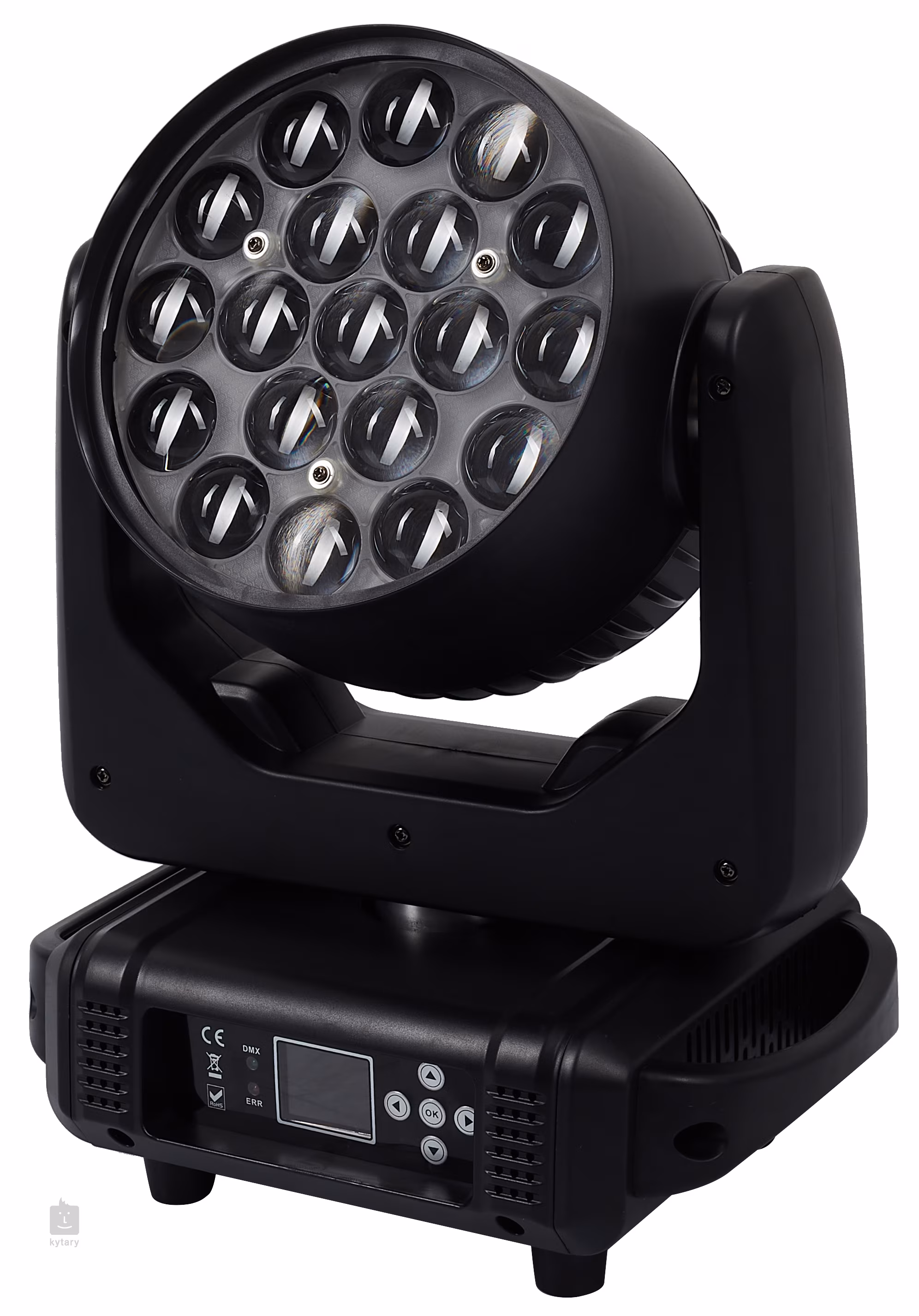 Otočná hlavice LED Moving Head 19x15W ZOOM od společnosti Flash je profesionální svítidlo, které využijete k osvětlení koncertů, festivalů, divadel a dalších akcí. Je osazená devatenácti 15W RGBW LED diodami, které produkují intenzivní světlo s vysokým výkonem a díky motorizované funkci zoom nabízí měnitelný vyzařovací úhel v rozmezí od 10° do 60°. K vytváření barevných světelných efektů slouží 8bitové míchání barev RGBW, 8bitový tlumič světla a stroboskopický efekt s nastavitelnou rychlostí (1–20 Hz). Samozřejmostí je funkce Pan (540°) a Tilt (270°).