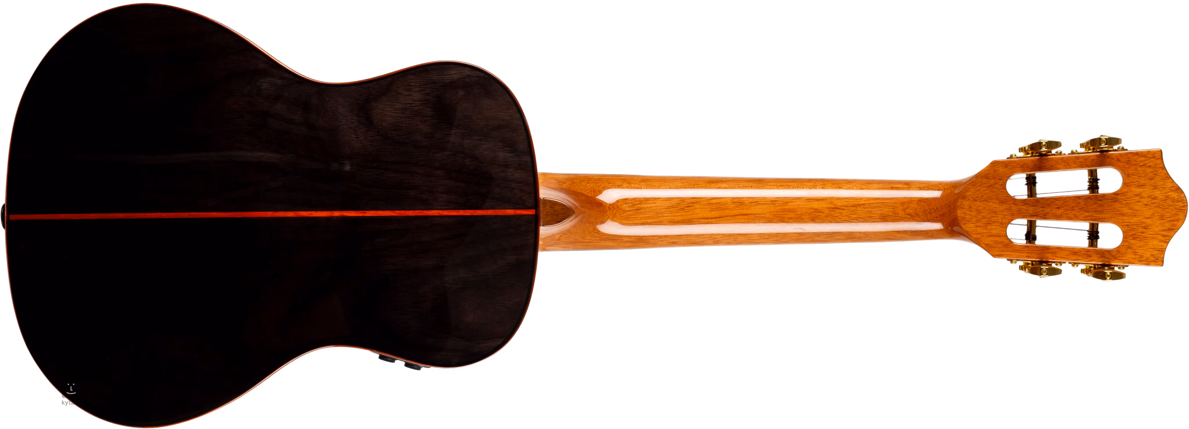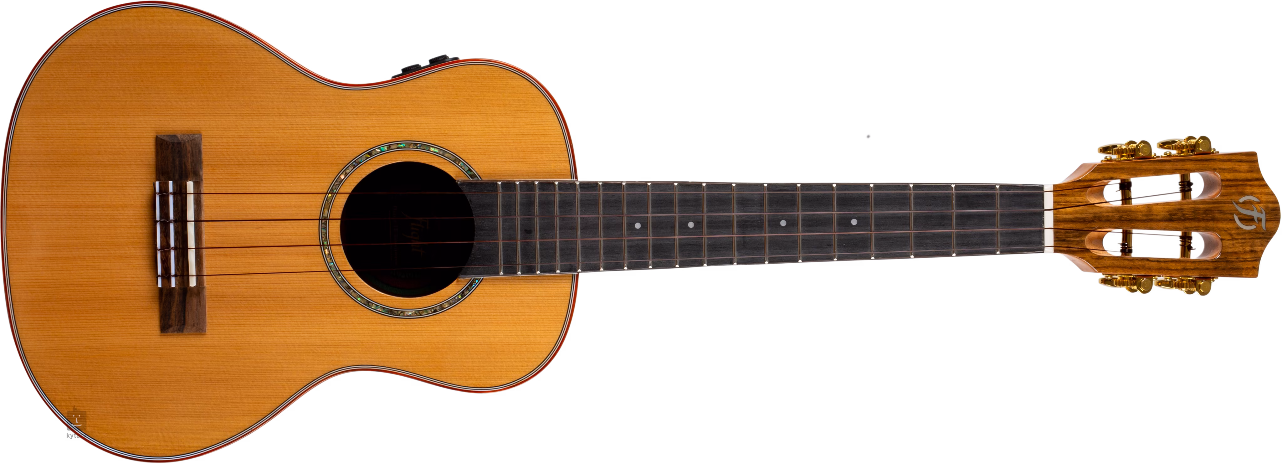 Přední deska tenorového ukulele Diana je zhotovena z masivního cedru, zadní deska a luby z laminovaného mořeného ořechu, jehož kresba pěkně kontrastuje s cedrovým topem. Ke krku z okoumé je přilepen hmatník ze dřeva purpleheart osazený osmnácti pražci. Struny jsou přes sedlo a nultý pražec z kosti uchyceny v hlavici v klasickém designu (slotted headstock). Pěkné zpracování podtrhuje lesklý lak těla, oboustranná obvodová lemovka, perleťová rozeta a hardware ve zlatém provedení.