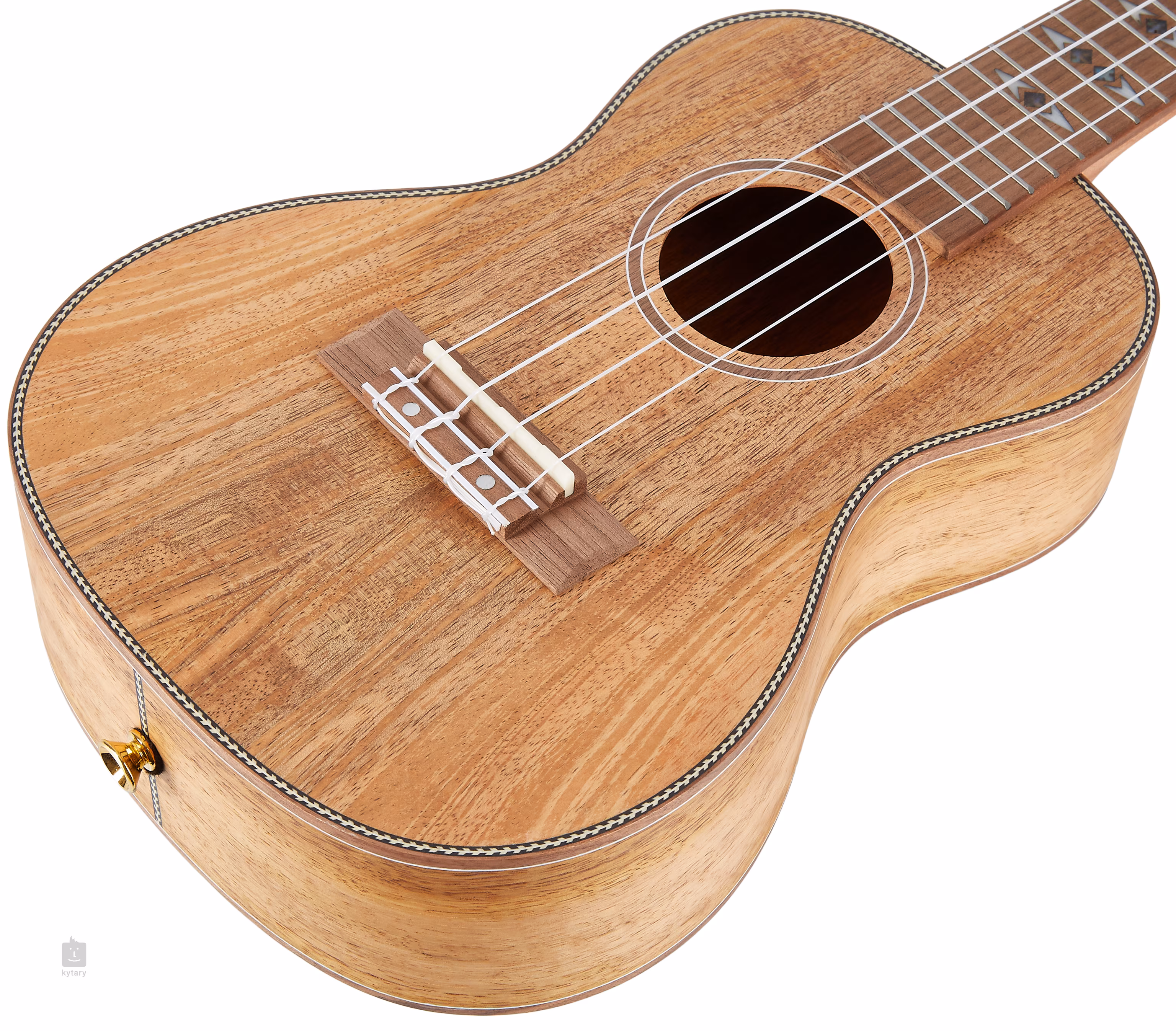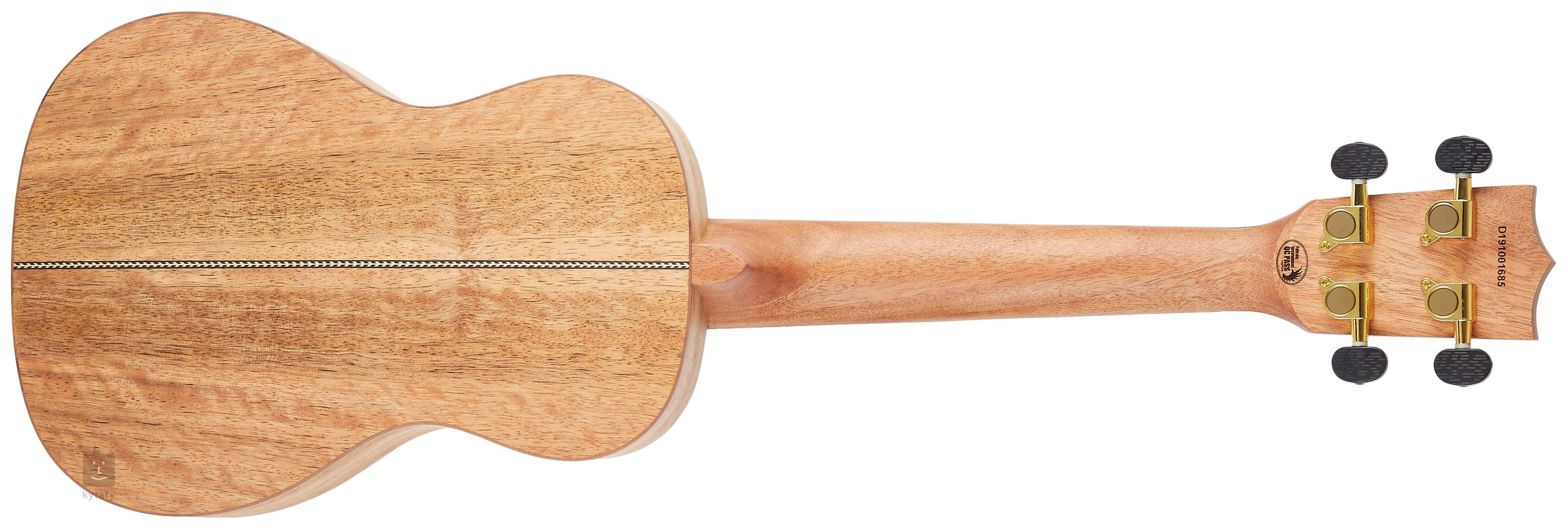 Tělo tohoto koncertního ukulele je zhotoveno z laminovaného mangovníku, který kromě populárních plodů mango nabízí i dřevo s parádní kresbou. Přirozenou rezonanci ukulele vylepšuje jemně klenutá zadní deska. Krk a hmatník nástroje jsou vyrobeny z afrického okoumé a ořechu, což je rovněž poměrně často používaná kombinace dřev. Struny jsou přes nultý a sedlový pražec z kosti ukotveny v ladicích mechanikách kytarového typu (Die-Cast Geared) a ořechové kobylce. Vzhled ukulele zpestřují zmíněné zdobné inlaye na hmatníku a hlavici, dekorativní výložka přední desky a středový proužek na zadní desce a rozeta složená z černobílých prstenců.