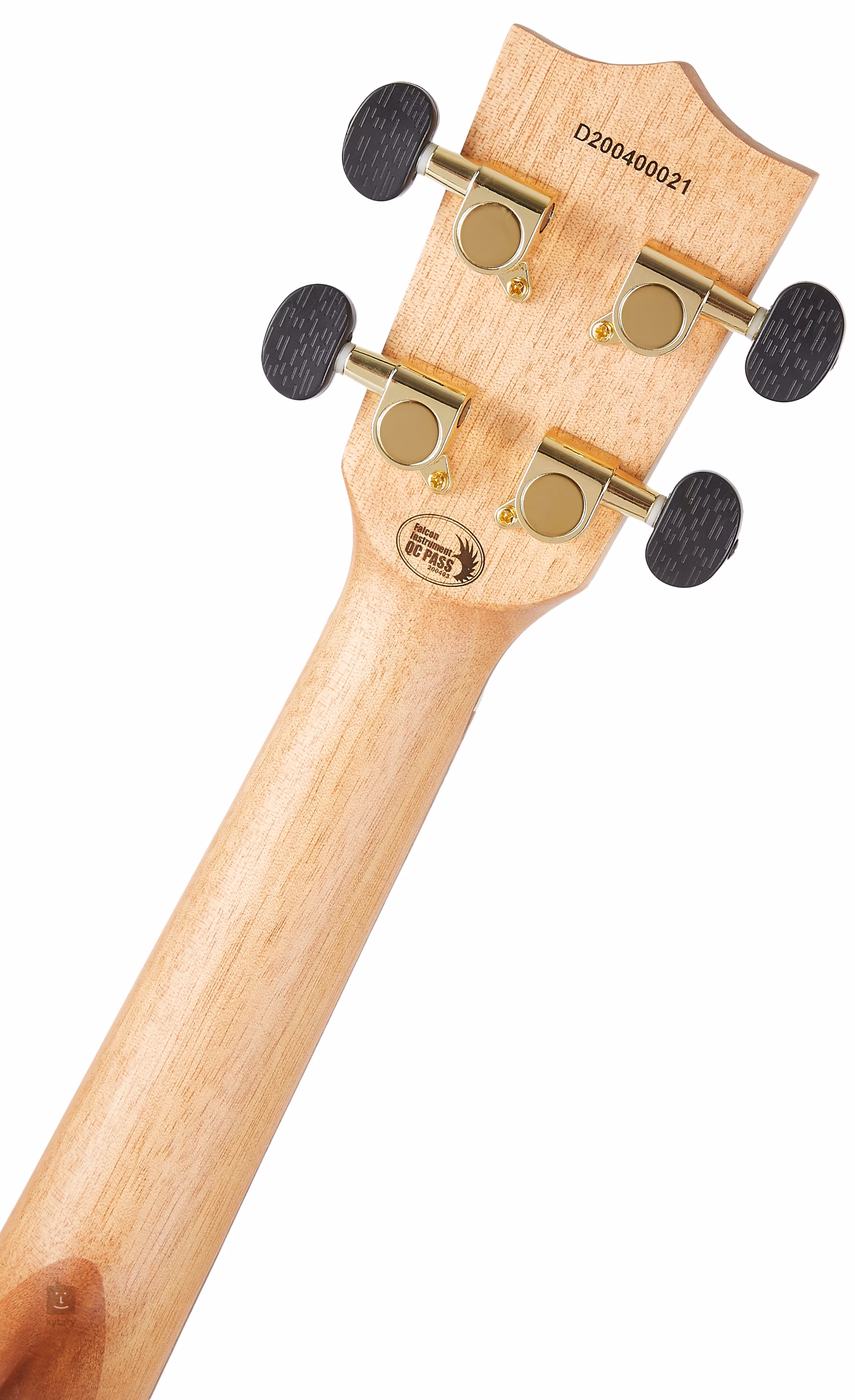 Tělo tohoto sopránového ukulele je zhotoveno z laminovaného obláčkového jasanu (quilted ash). Přirozenou rezonanci ukulele vylepšuje jemně klenutá zadní deska. Krk a hmatník nástroje jsou vyrobeny z afrického okoumé a ořechu, což je rovněž poměrně často používaná kombinace dřev. Struny jsou přes nultý a sedlový pražec z kosti ukotveny v ladicích mechanikách kytarového typu (Die-Cast Geared) a ořechové kobylce. Vzhled ukulele zpestřují zmíněné zdobné inlaye na hmatníku a hlavici a rozeta s výrazným javorovým prstencem.