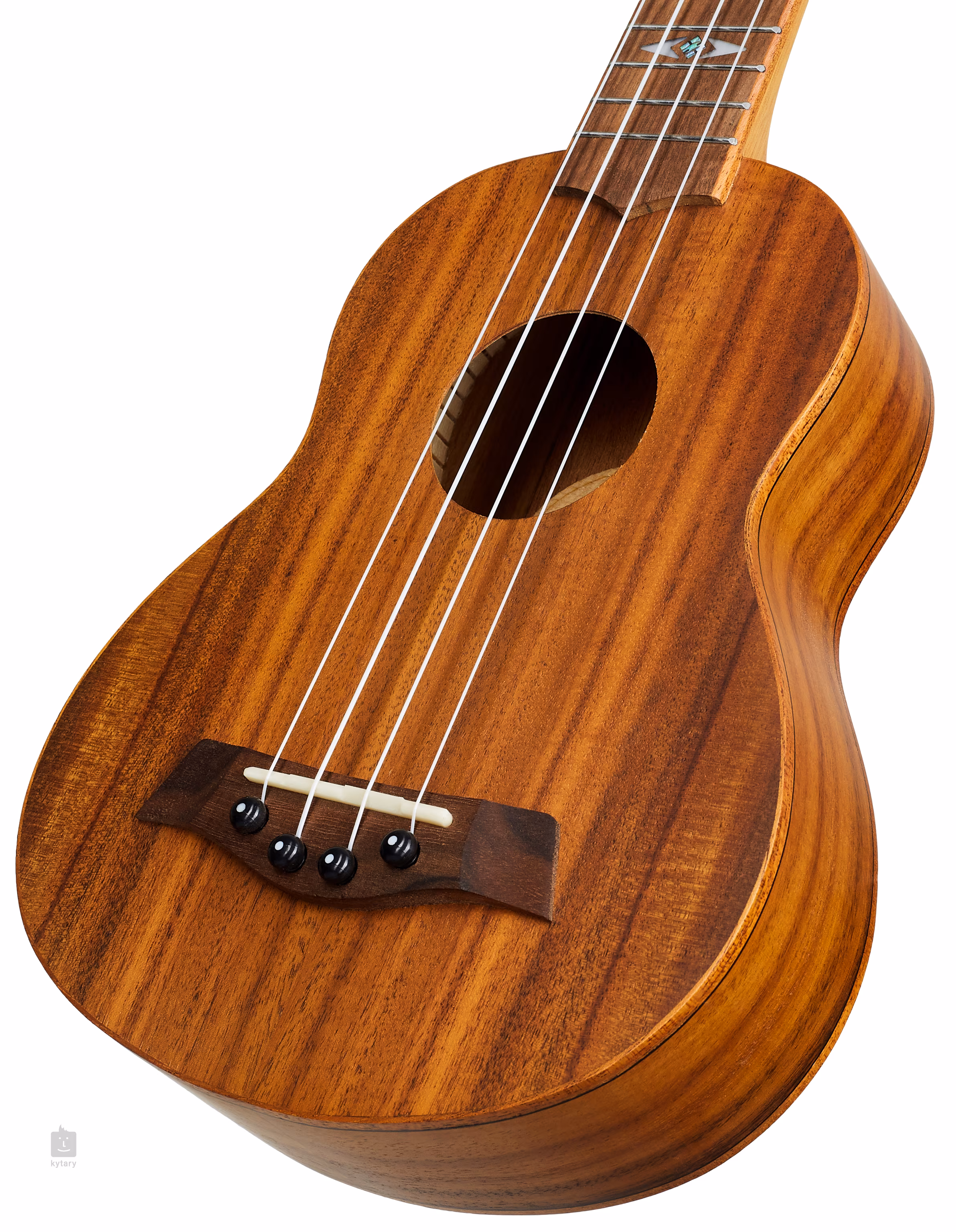 Tělo tohoto sopránového ukulele je zhotoveno z laminované akácie, což je dřevo ze stejné rodiny jako koa. Krk a hmatník nástroje jsou vyrobeny z afrického okoumé a ořechu, což je rovněž poměrně často používaná kombinace dřev. Struny jsou přes nultý a sedlový pražec z kosti ukotveny v ladicích mechanikách kytarového typu (Die-Cast Geared) a ořechové kobylce. Vzhled ukulele zpestřují zmíněné zdobné inlaye na hmatníku a hlavici a hardware ve zlatém provedení.