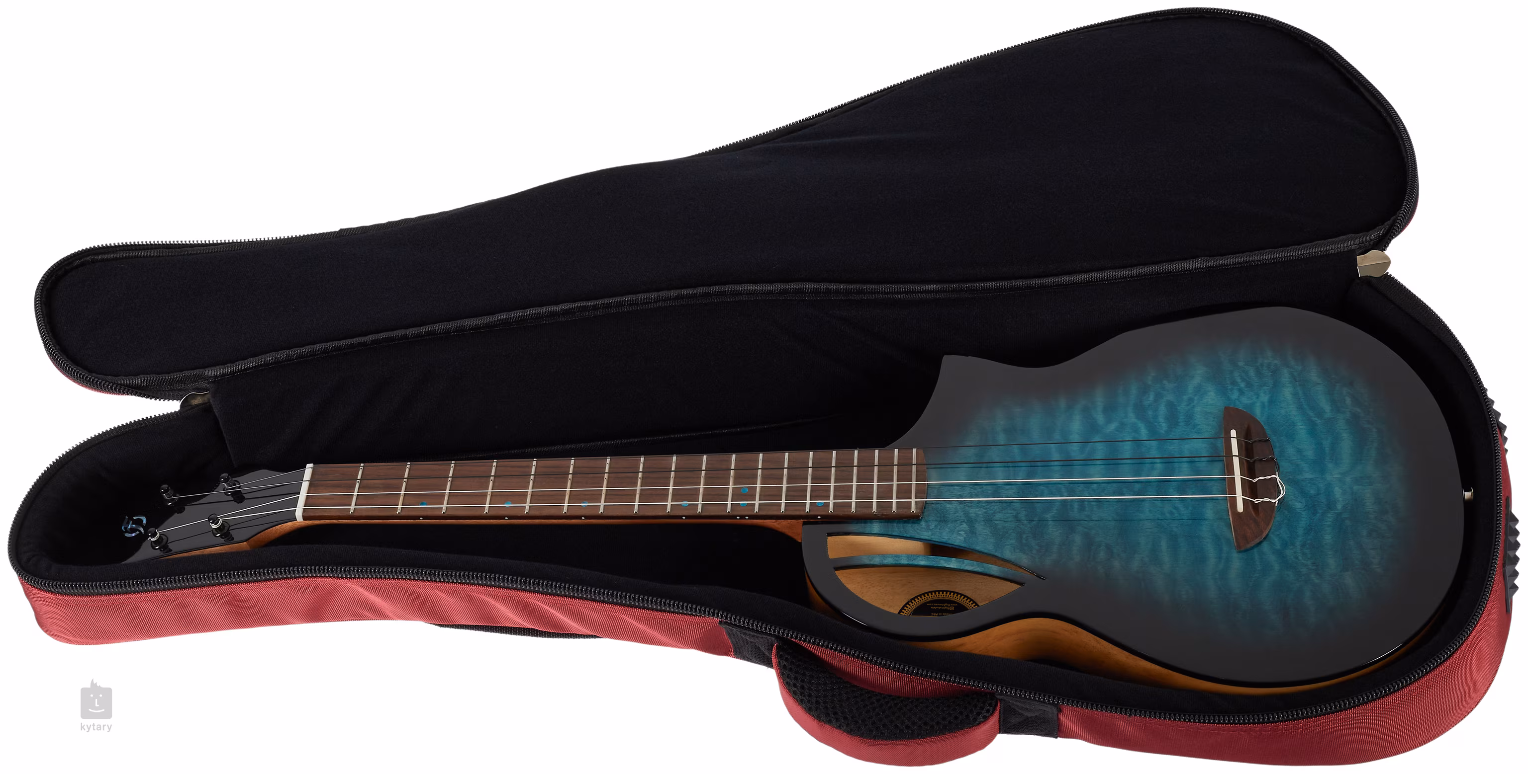Stabilitu ladění a skvělý sustain zaručuje ukotvení strun přes kompenzované sedlo a nultý pražec z kosti v ladicích mechanikách kytarového typu a palisandrové kobylce. Kvalitu zpracování podtrhuje černá obvodová lemovka těla, modré poziční tečky na hmatníku a logo na lesklé černé hlavici nástroje.