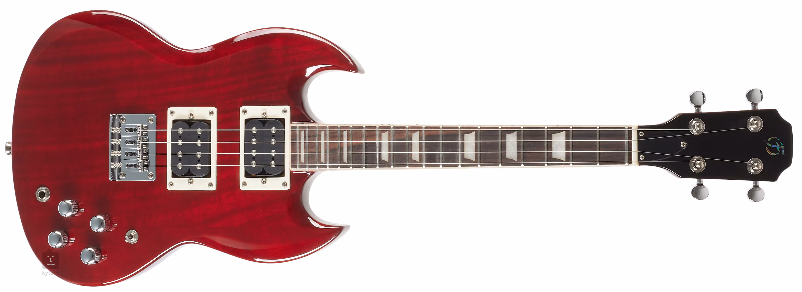 Punc opravdovosti poskytují nástroji dva humbuckery a ovladače v podobě potenciometrů hlasitosti, tónové clony a třípolohového přepínače snímačů. Struny jsou ukotveny ve stylových chromovaných mechanikách kytarového typu a přes pevnou kobylku skrze tělo kytary.