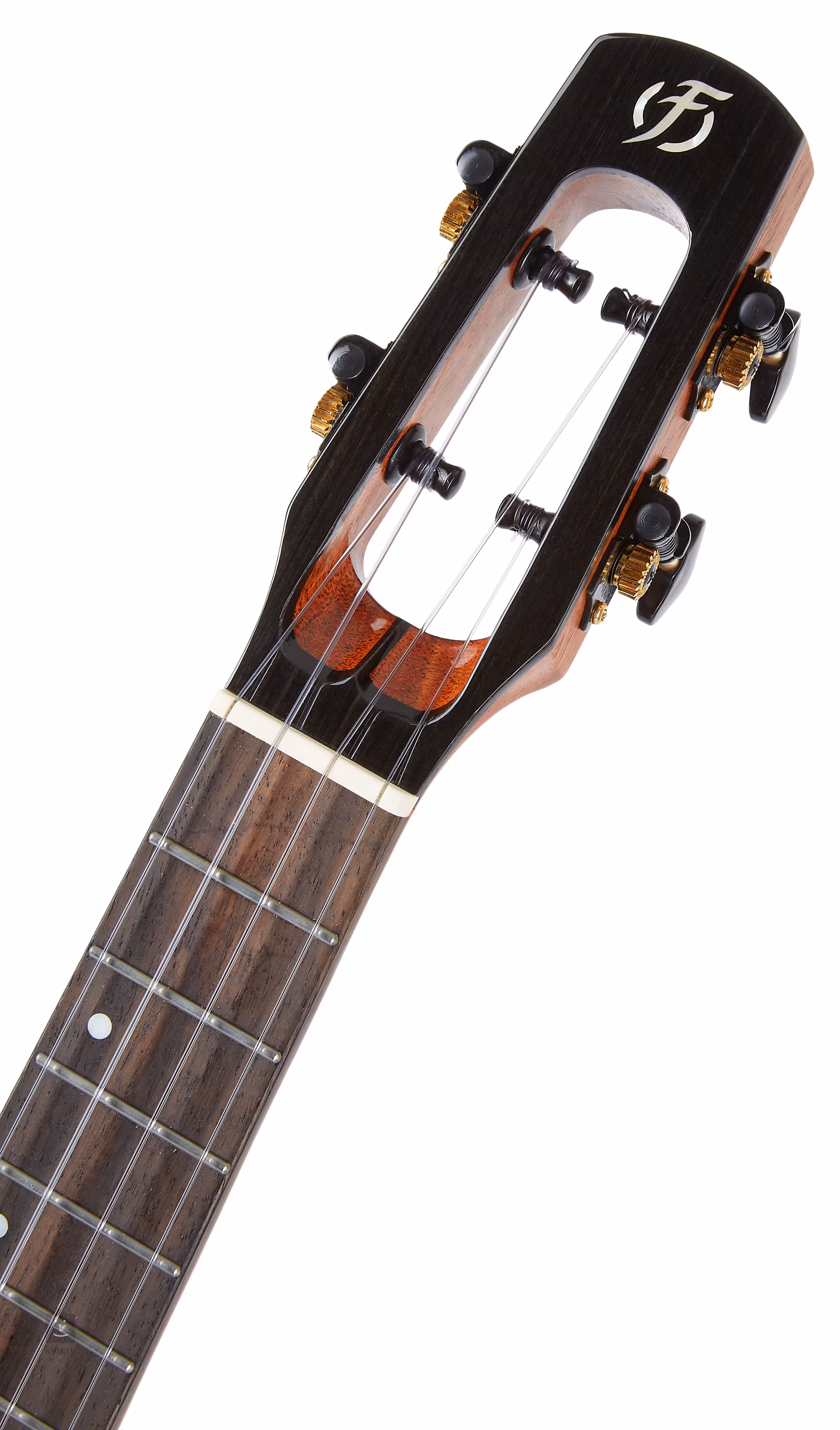 Stabilitu ladění a skvělý sustain zaručuje ukotvení strun přes sedlo a nultý pražec z kosti v otevřených ladicích mechanikách a v tzv. string-through kobylce, konceptu převzatém z designu kytar, kdy jsou struny uchyceny přes kobylku a skrze přední desku ukulele. Kvalitu zpracování dobře ilustruje moderní design hlavice, lesklý finiš topu a tradiční prvky v podobě offset pozičních značek na palisandrovém hmatníku a perleťové rozety.