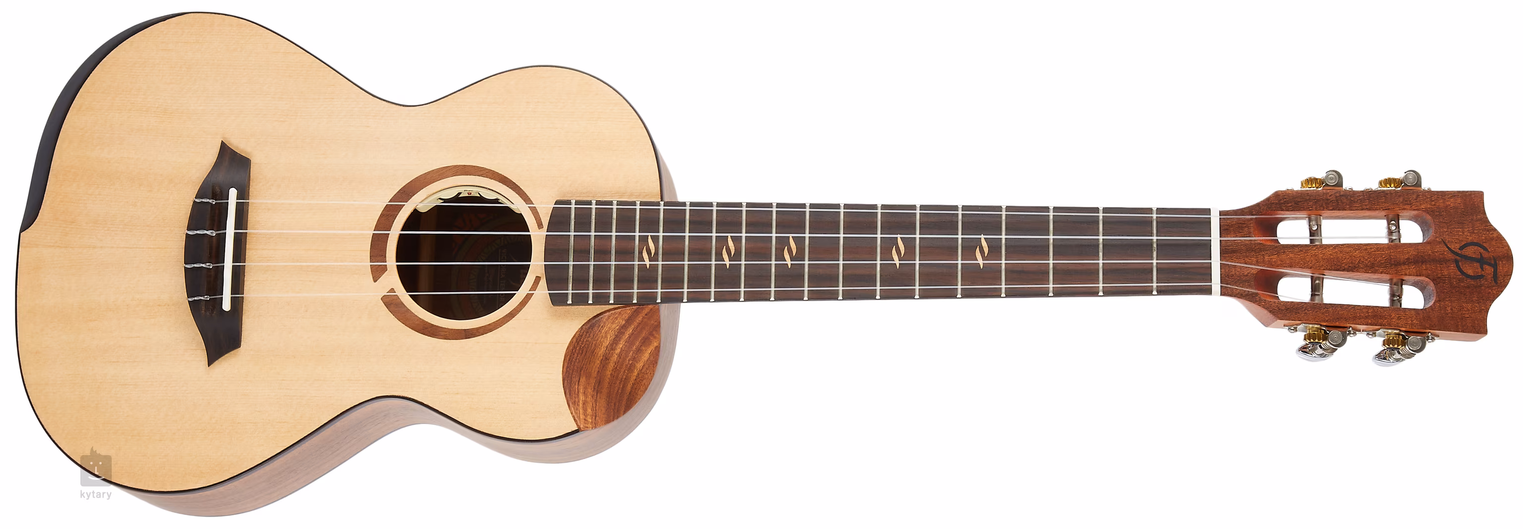 Přední deska tenorového ukulele Victoria je zhotovena z masivního smrku Sitka, zadní deska luby z laminované akácie, která zjemňuje průraznost smrkového topu. V rámci materiálů pro krk a hmatník padla volba na osvědčená dřeva, africký mahagon a eben, používaná u prémiových nástrojů. Herní komfort pozvedávají na vyšší úroveň designové prvky v podobě jemně vybraného spodního výřezu těla a ebenové opěrky ramene. Struny jsou přes kompenzované sedlo a nultý pražec z kosti uchyceny ve firemních mechanikách a ebenové kobylce. Pěkné zpracování podtrhují zdobné poziční značky na hmatníku a klasický design hlavy (slotted headstock).