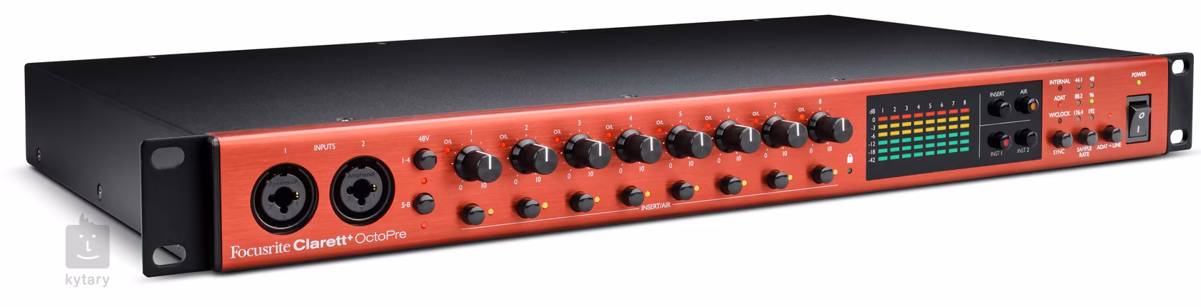 Focusrite Scarlett OctoPre+ je osmikanálový mikrofonní předzesilovač a AD / DA převodník s digitálním rozhraním ADAT. Druhá generace mikrofonních předzesilovačů pracuje v rozlišení 24 bit/192 kHz a nabízí dynamický rozsah až 118 dB. Dva analogové vstupy umístěné na čelním panelu jsou schopny zpracovat mikrofonní, linkový nebo přímý nástrojový signál (Hi-Z). OctoPre je ideálním studiovým doplňkem pro rozšíření konektivity zvukových karet řady Scarlett a dalších přístrojů vybavených rozhraním ADAT. Převodník je uzpůsobený pro instalaci do racku, kde zabere jednu výškovou jednotku. Maximální přehled nad vstupním signálem potom získáte prostřednictvím LED metrů.