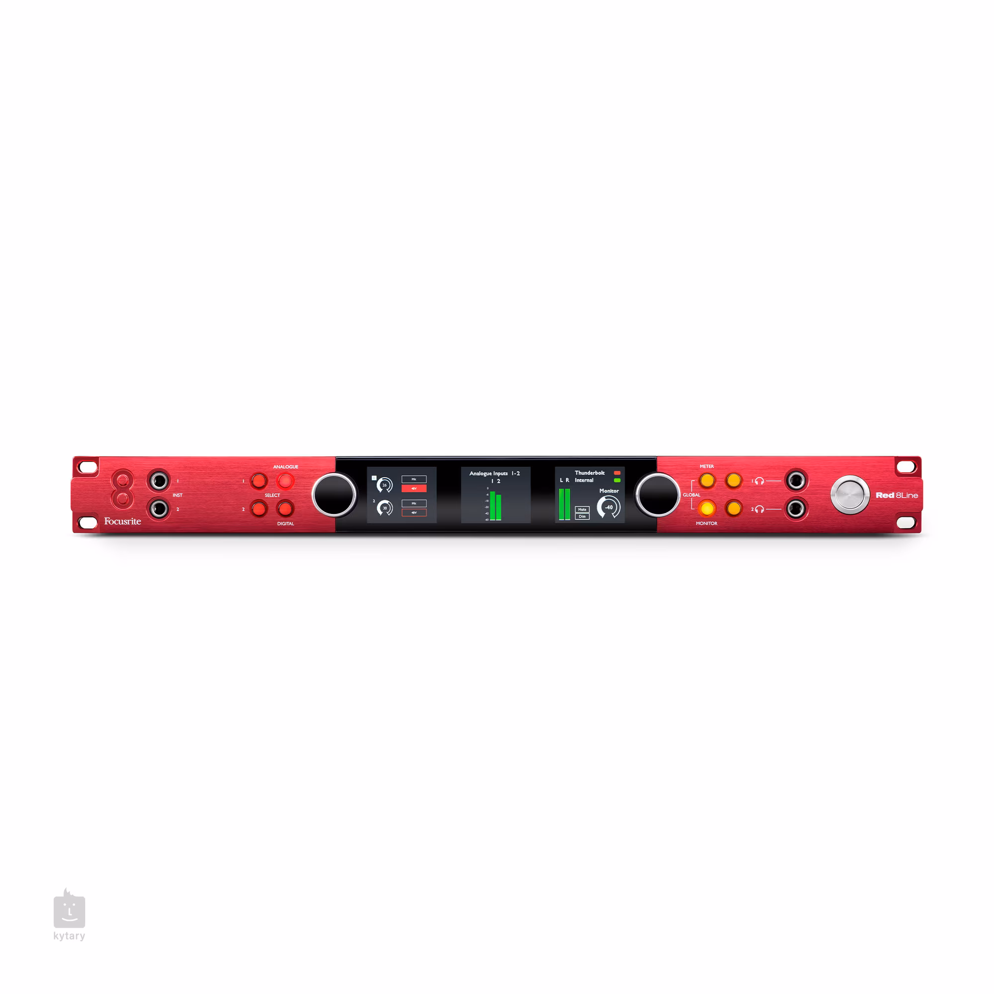 Mezi další vlastnosti Red 8Line patří detailní zobrazování pomocí tří LCD displejů pro vysoce přesné měření úrovně pro jakýkoli vstupní nebo výstupní blok, stejně jako hlavní monitorový a sluchátkový výstup. Dva sluchátkové výstupy špičkové kvality jsou dostatečně výkonné, aby poskytovaly hlasitý a čistý zvuk i na sluchátkách s vysokou impedancí. Dva nástrojové vstupy na předním panelu zajišťují, že máte vždy okamžitý přístup k rychlému připojení například kytary či baskytary.