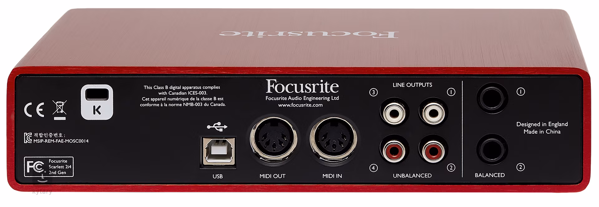 Čtevřice analogových výstupů a MIDI In/Out dělá ze Scarlett 2i4 ideálního partnera pro všechny moderní hudební producenty, kteří při živých vystoupeních používají externí syntezátory. Symetrické výstupy TRS (Jack 6,3 mm) jsou určeny pro profesionální studiové monitory, zatímco čtveřice RCA výstupů ideálně poslouží pro připojení DJ mixu, nebo domácího zvukového systému.