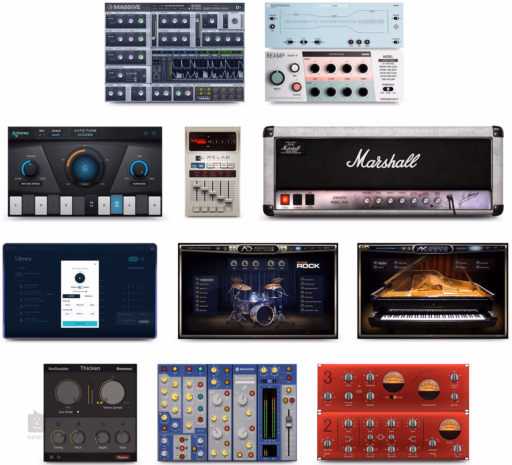 Ke každému audio rozhraní Scarlett dostanete DAW Ableton Live Lite a Avid Complete Plugin Bundle, dále AutoTune Access, Softube Marshall Silver Jubilee 2555, Addictive Drums, Relab Reverb a samozřejmě porci kvalitních pluginů přímo od Focusrite. Všem uživatelům je dostupná časově neomezená licence špičkového DAW Pro Tools Intro+.