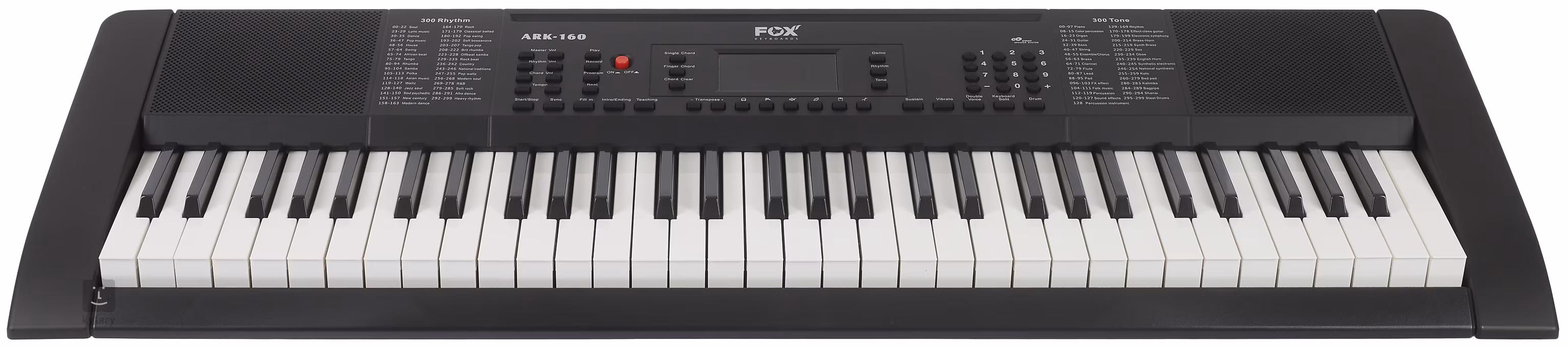 FOX 160 nabízí 61 kláves standardní velikosti, 128 zvuků a 128 automatických doprovodů. Nechybí ani pokročilé funkce jako Split (rozdělení klaviatury pro hru na dva nástroje zároveň), Dual Voice (vrstvení zvuků), nebo nastavení Sustainu (dozvuku) a Vibrata. Klaviaturu lze rovněž transponovat, což ocení jak začátečníci, tak pokročilí hráči. Nechybí možnost hraní akordů jedním prstem, funkce Record pro záznam vašich pokusů nebo metronom a výukový systém. Ke klávesám lze připojit mikrofon.
