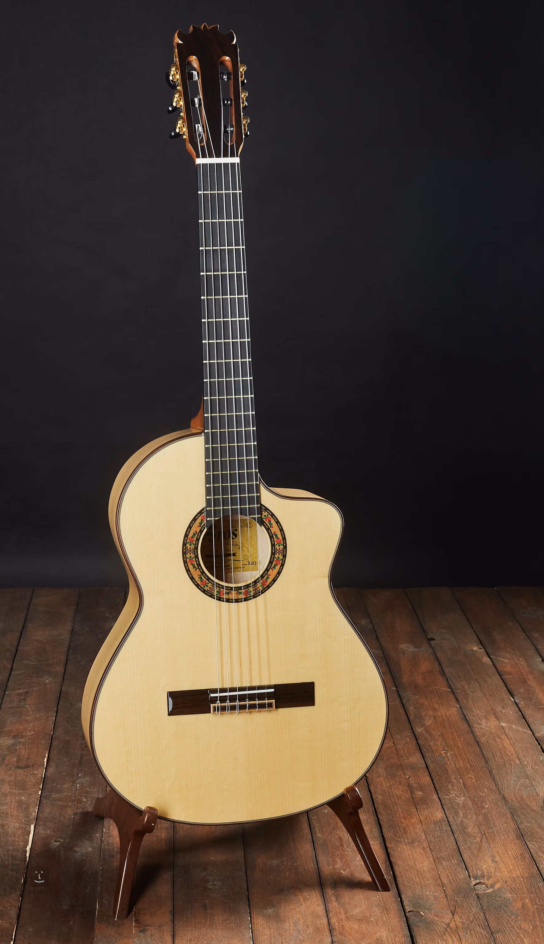 Španělská manufaktura Francisco Bros sídlí poblíž Středozemního moře v městečku Gata de Gorgos na půl cesty mezi Alicante a Valencií. Kromě klasických a flamenco kytar se věnuje výrobě kytar s výřezem. Speciálním výřezem je opatřený i tento model B40F Especial.