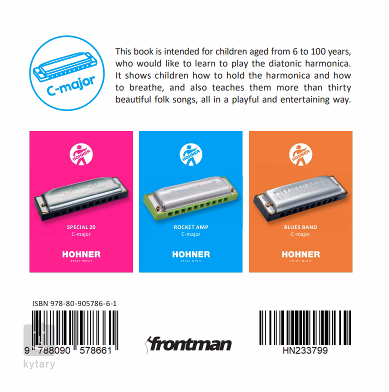 Učebnice hry na diatonickou foukací harmoniku pro děti od 6 do 100 let. V publikaci se hravou formou dozvíte nejen jak správně držet foukací harmoniku a jak pracovat s dechem (brániční dýchání), ale rovněž se naučíte více než třicet krásných lidových písniček i vánočních koled a jako třešinku na dortu Ódu na radost.