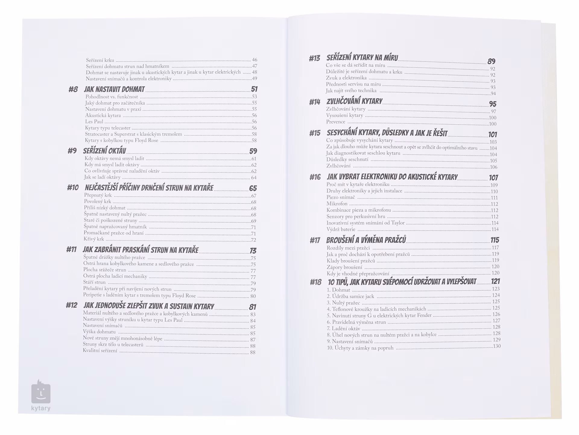 V první dílu se dozvíte jak a na základě čeho vybírat kytaru, jak nástroj správně seřídit a využít tak jeho možnosti na maximum a jakou úlohu hraje vhodný výběr strun. Publikace vás rovněž seznámí s problematikou zvlhčování a nabídne mnoho dalších fíglů, jak svou hru posunout na další úroveň.