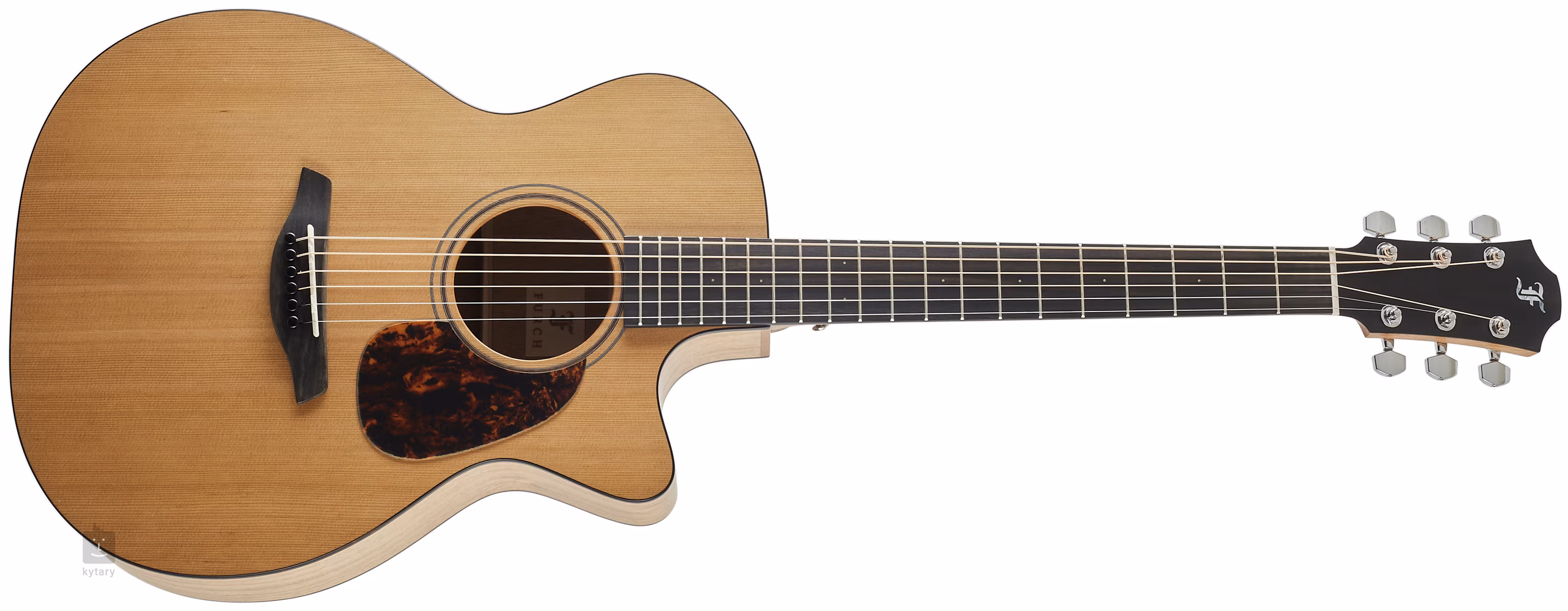 Pěkné zpracování kytar Furch Blue podtrhuje lemovka a pickguard z imitace želvoviny a zdobná rozeta s výložkou z černého ořechu. Orientaci na ebenovém hmatníku usnadňují boční a čelní bodové poziční značky. Přesné a stabilní ladění zaručují chromované firemní mechaniky s převodovým poměrem 1:18.