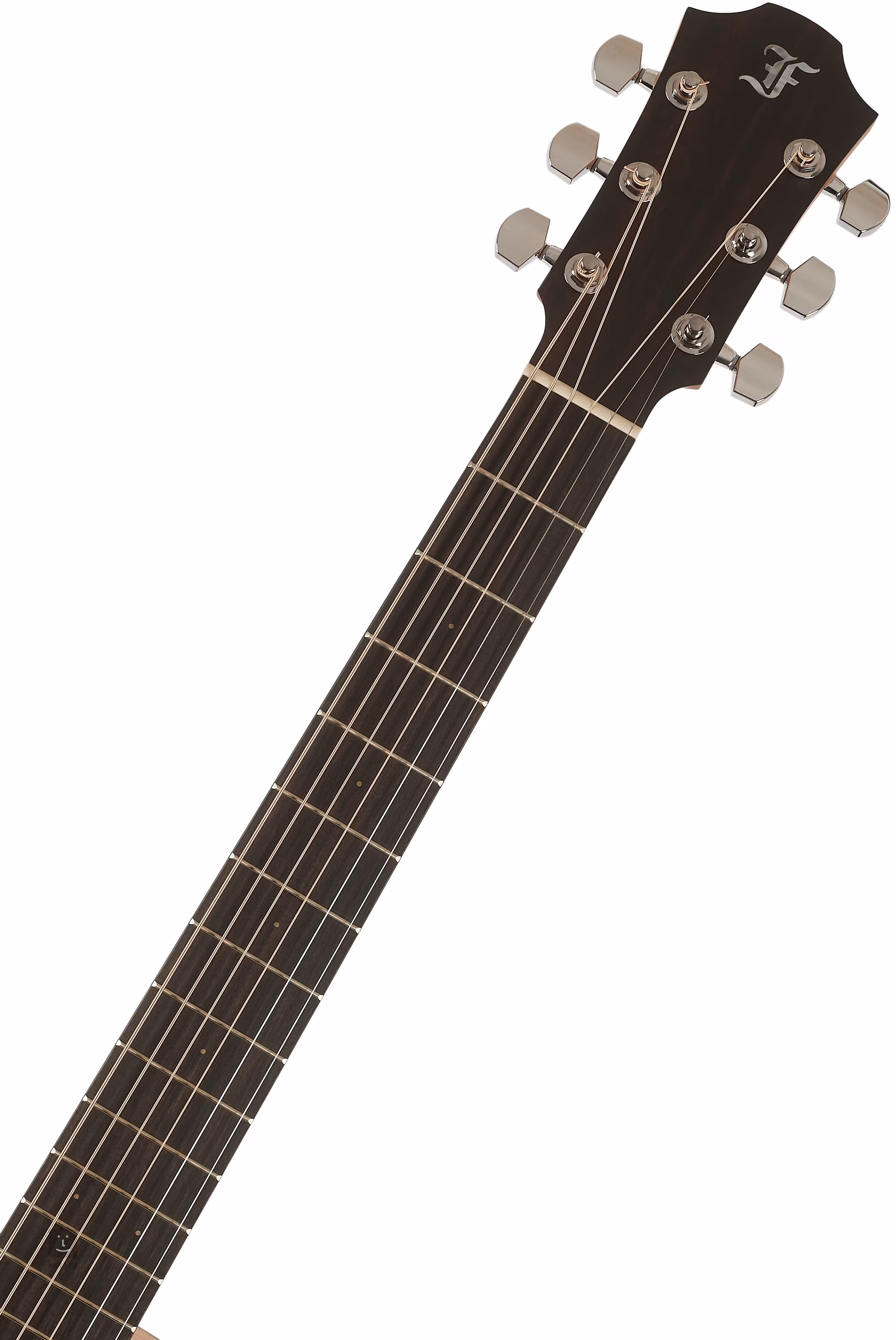 Orientaci na ebenovém hmatníku usnadňují boční a čelní bodové poziční značky. Přesné a stabilní ladění zaručují chromované firemní mechaniky s převodovým poměrem 1:18. Pěkné zpracování podtrhuje lemovka z imitace želvoviny, rozeta tvořená dvojitým prstencem s vykládáním z černého ořechu, kartáčované pražce a transparentní pickguard, který nechává vyniknout přirozenou krásu dřeva.