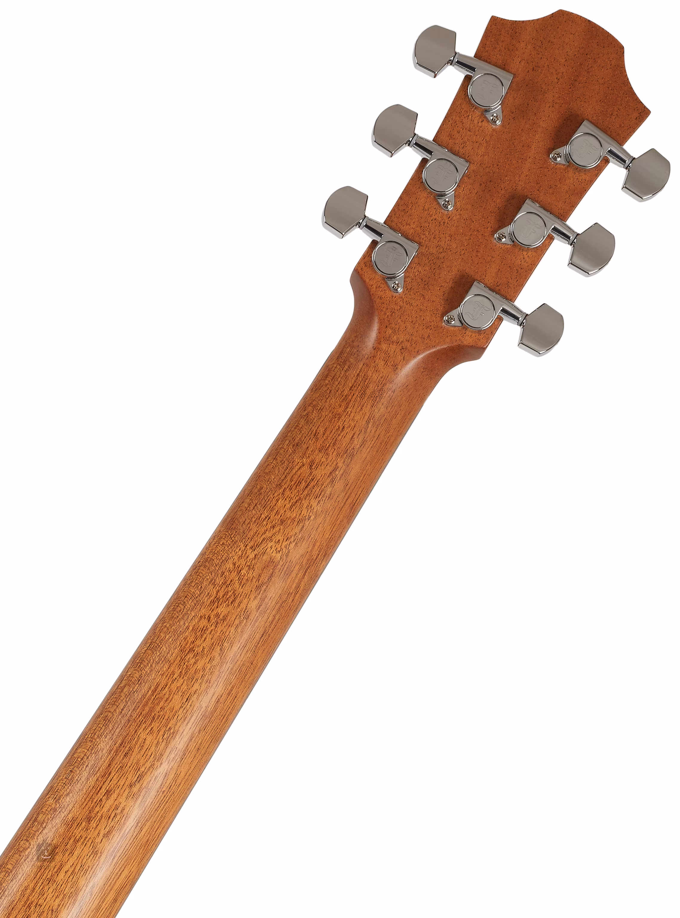 Orientaci na ebenovém hmatníku usnadňují boční a čelní bodové poziční značky z bílé perleti. Saténová úprava krku Full-Pore Smooth-Slide Satin Finish optimalizuje hratelnost a umožňuje klouzat plynule z akordu do akordu. Chromované firemní mechaniky s převodovým poměrem 1:18 jsou zárukou přesného a stabilního ladění. Luxusní vzhled kytar Furch Green podtrhuje lemovka z imitace slonoviny s výložkou z pěti vrstev černobílých kontrastních linek a rozeta tvořená dvojitým prstencem s vykládáním z černého ořechu.
