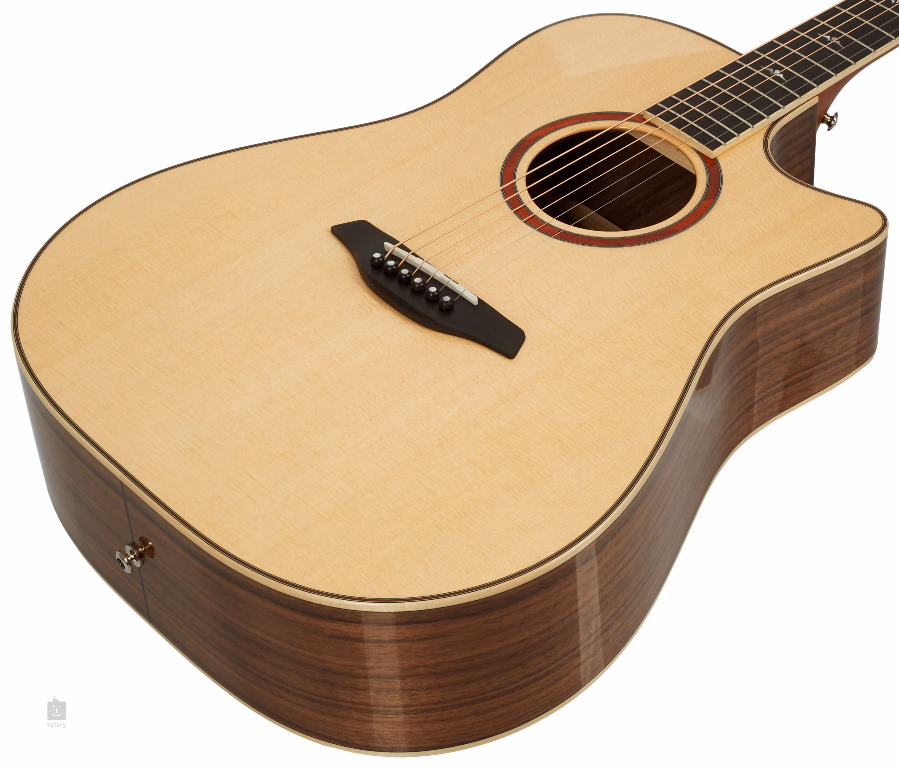 Lemování těla, hlavy a hmatníku z amerického javoru a rozeta a dekorace přední desky z exotického dřeva redheart s černými a bílými kontrastními linkami vhodně doplňují základní použité materiály a podtrhují exkluzivní vzhled kytar. Transparentní pickguard nechává vyniknout přirozené kresbě dřeva a zároveň neovlivňuje rezonanci přední desky. Orientaci na ebenovém hmatníku usnadňují boční černé poziční značky a čelní perleťové intarzie. Špičkové mechaniky Gotoh 510 ve stříbrné patině s ebenovými olivami a vysoce jemným převodovým poměrem 1:21 jsou zárukou stabilního ladění.