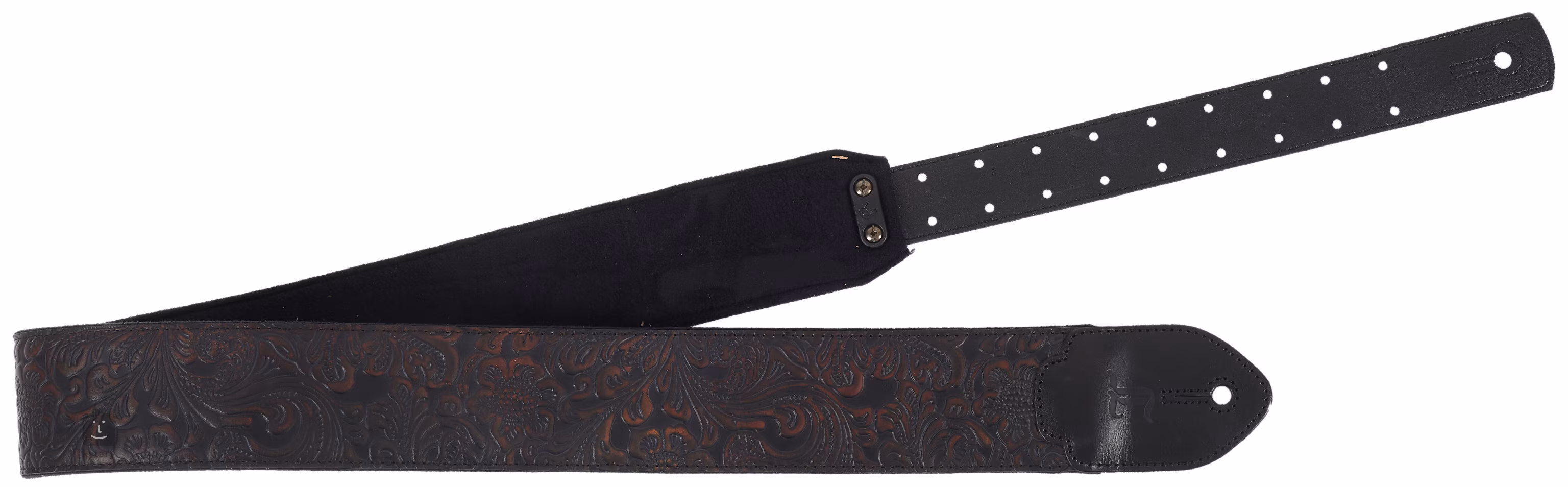 Pokud hledáte popruh prvotřídní kvality, u kterého je garantováno precizní zpracování, značka Furch je zajisté tou správnou volbou. Popruh Ornate Embossed Leather Strap vznikl ve spolupráci se španělským výrobcem popruhů RightON! a spojuje v sobě maximální pohodlí a elegantní zdobený design. Popruh je vyroben z prémiové pravé kůže, která mu zajišťuje odolnost a velmi dlouhou životnost. Ručně vyřezávané vzory vytvářejí bohatý, texturovaný vzhled a starají se o to, že každý kus je jedinečný, s jemnými variacemi v ražbě a povrchové úpravě. Díky 5mm polstrování je popruh navíc velice komfortní, což oceníte zejména při hraní na těžší nástroje nebo při dlouhých vystoupeních. Samozřejmostí je nastavitelná délka, u tohoto modelu zajištěná systémem RAS, který se skládá z děrovaného pásku a dvou cvočků pro uchycení.