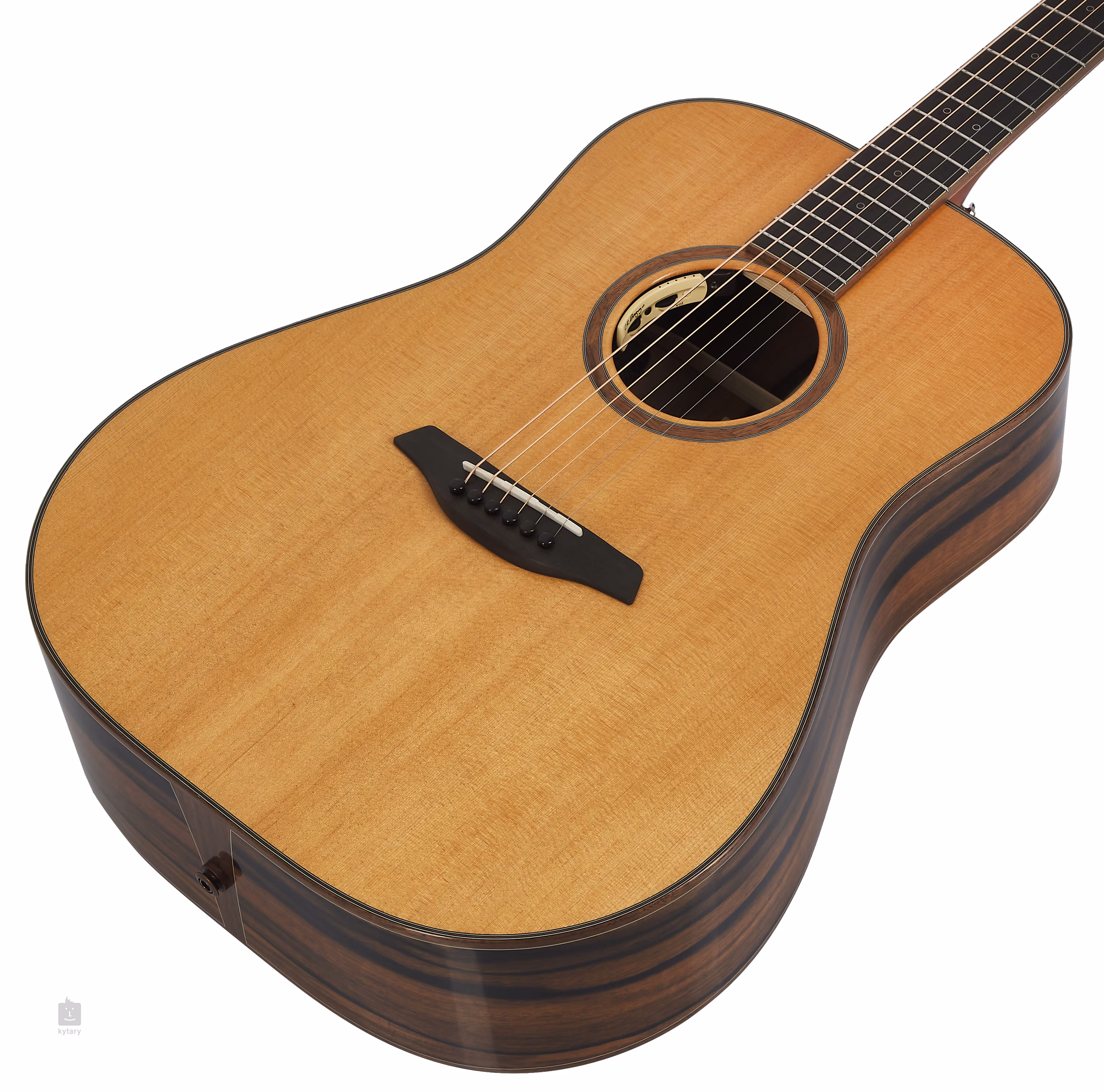 Ušlechtilý vzhled kytary podtrhují dekorativní prvky z černého ořechu - lemovka těla, hmatníku a hlavy doplněná bílou kontrastní linkou, středový proužek zadní desky s bílými kontrastními linkami na obou stranách, dekorace koncového bloku a rozeta z masivního černého ořechu. Transparentní pickguard nechává vyniknout přirozené kresbě dřeva a zároveň neovlivňuje rezonanci přední desky. Orientaci na ebenovém hmatníku usnadňují zdobné perleťové polohové značky a boční perleťové tečky. Stabilní ladění zaručují kvalitní mechaniky Gotoh 510 Nickel patina s ebenovými kolíčky.