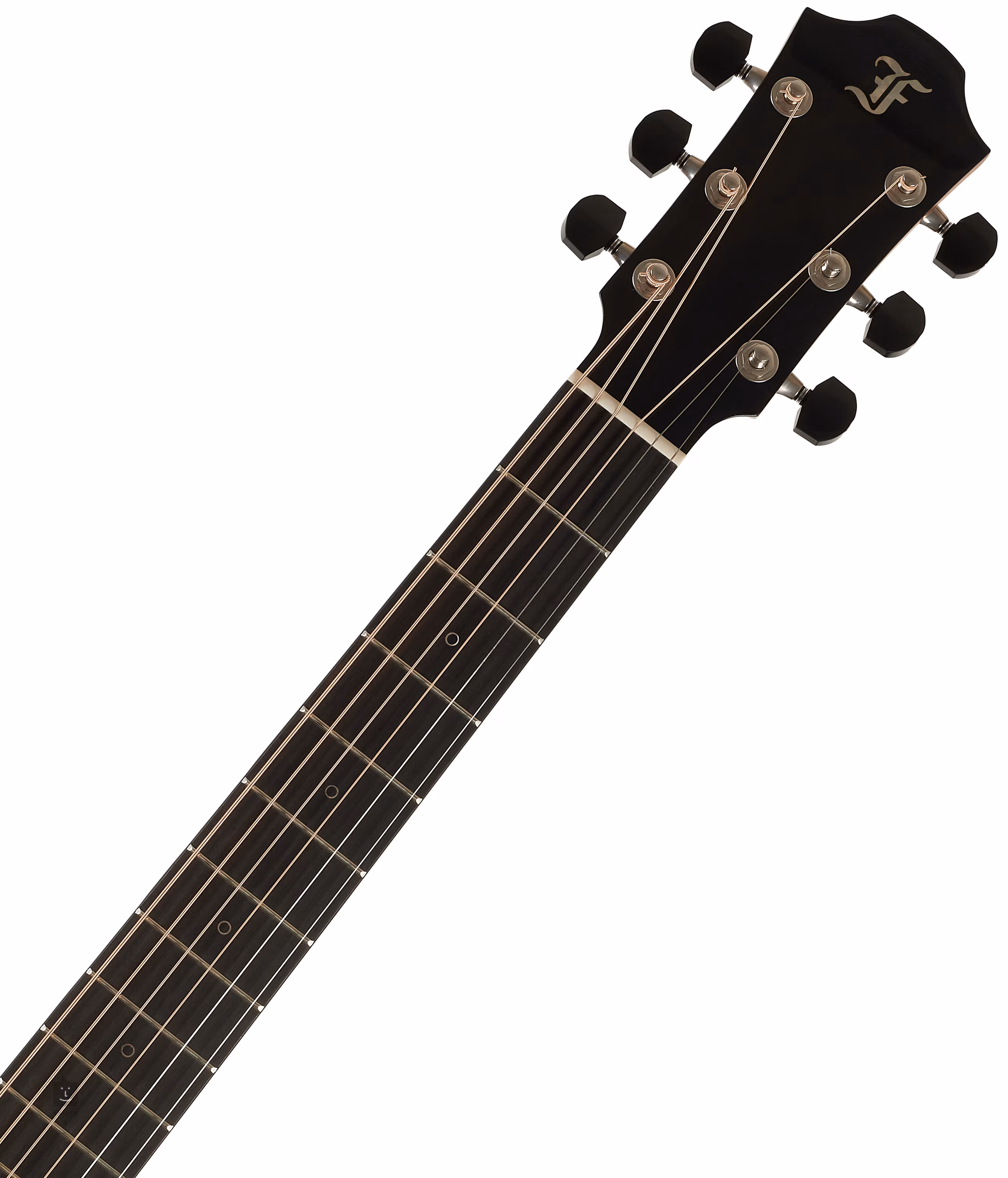 Orientaci na ebenovém hmatníku usnadňují kruhové polohové značky s obrysovou linkou z bílé perleti a boční lineární značky. Ušlechtilý vzhled kytary podtrhuje dekorace přední desky z redheartu doplněná černobílými linkami, prémiová rozeta z redheartu a perleti (abalone) a ebenové kolíčky do kobylky s perleťovými očky. Stabilní ladění zaručují kvalitní mechaniky Gotoh 510 v odstínu stříbrné patiny s ebenovými kolíčky.