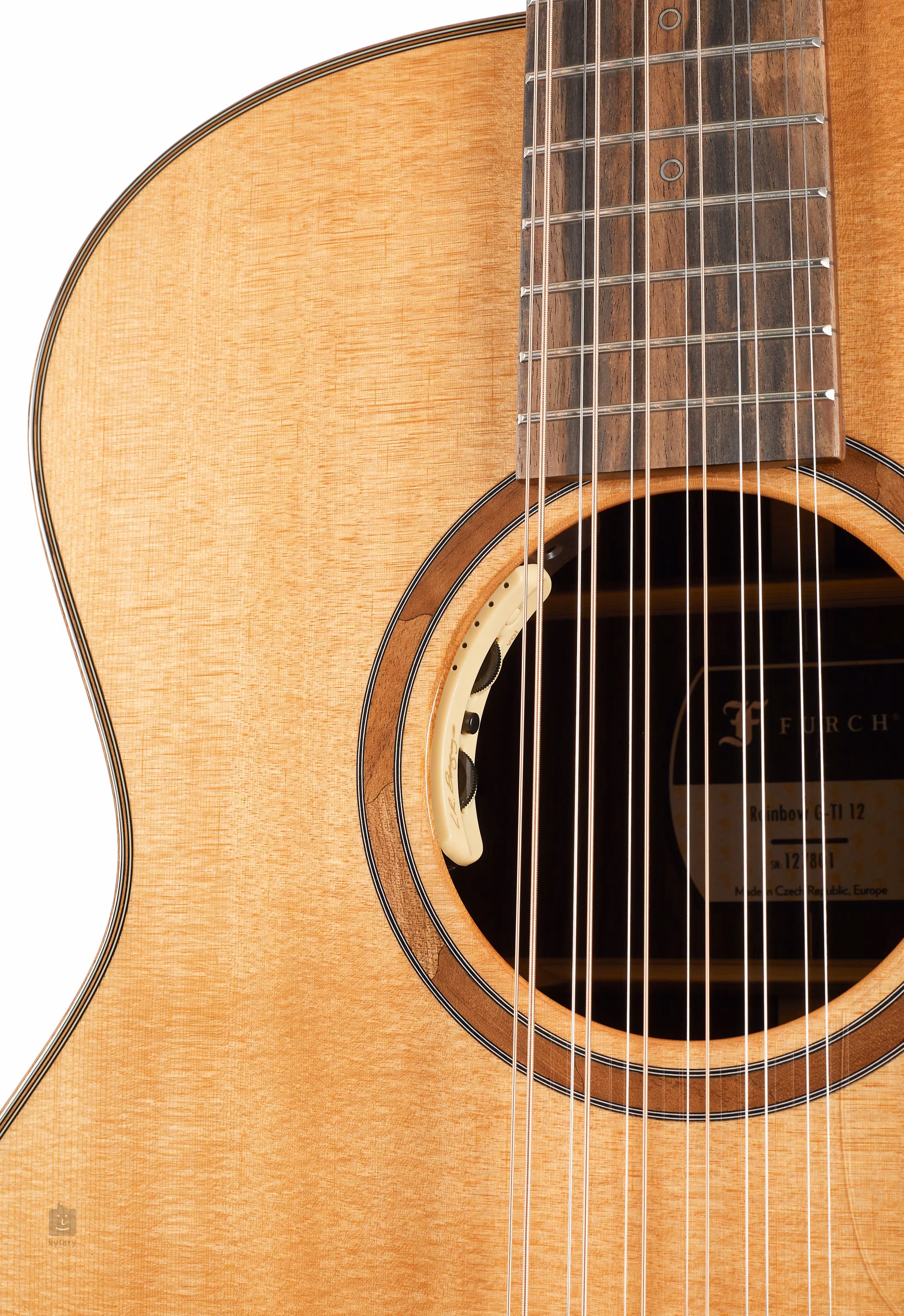 Přední deska dvanáctistrunné elektroakustické kytary Rainbow G-TI 12 je zhotovena ze smrku Sitka, zadní deska a luby jsou vyrobeny z exotického malajsijského blackwoodu. Povrchová úprava těla Full-Pore High-Gloss, tj. lak s plnými póry a vysokým leskem, zlepšuje akustické vlastnosti kytar, poskytuje vynikající ochranu povrchu dřeva a zvýrazňuje jeho přirozenou strukturu.